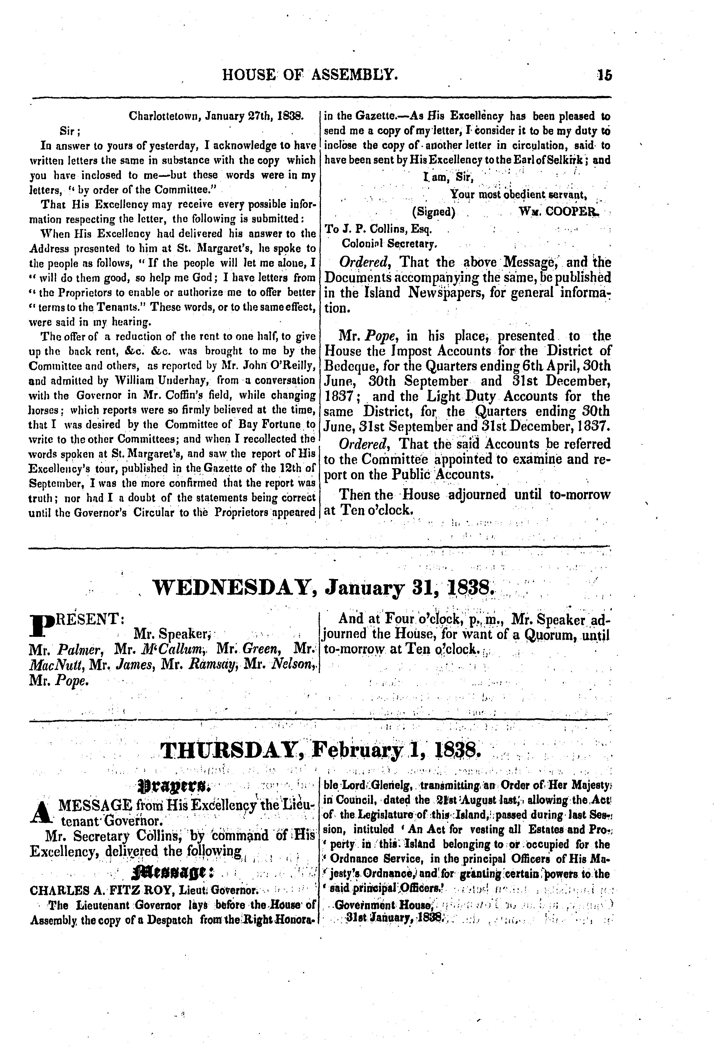 Charlottetown : J. B. Cooper & Co., 1838.