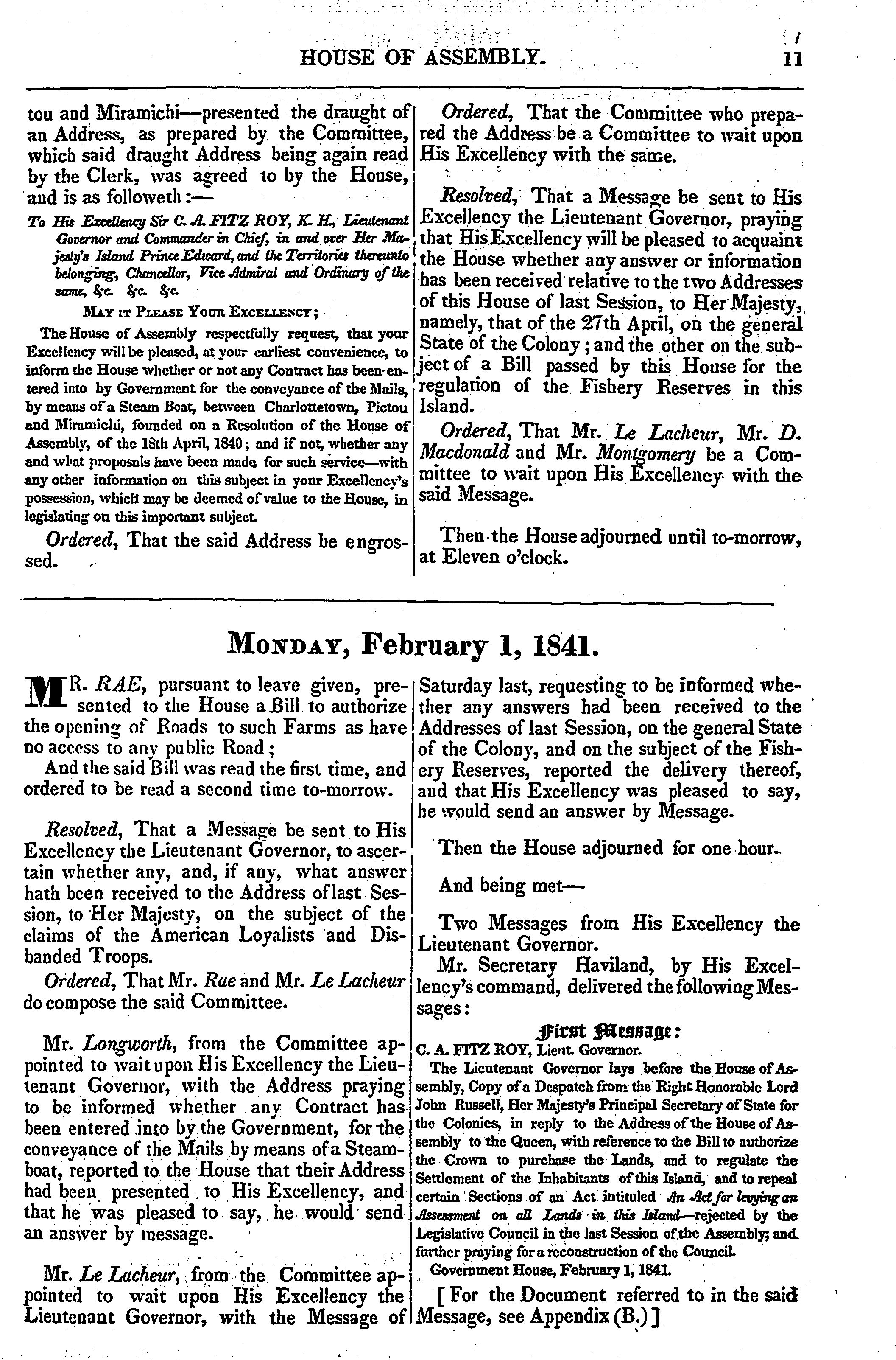 Journal of the House of Assembly of Prince Edward Island : anno quarto Victoriæ Reginæ, fourth session of the fifteenth General Assembly : 1841