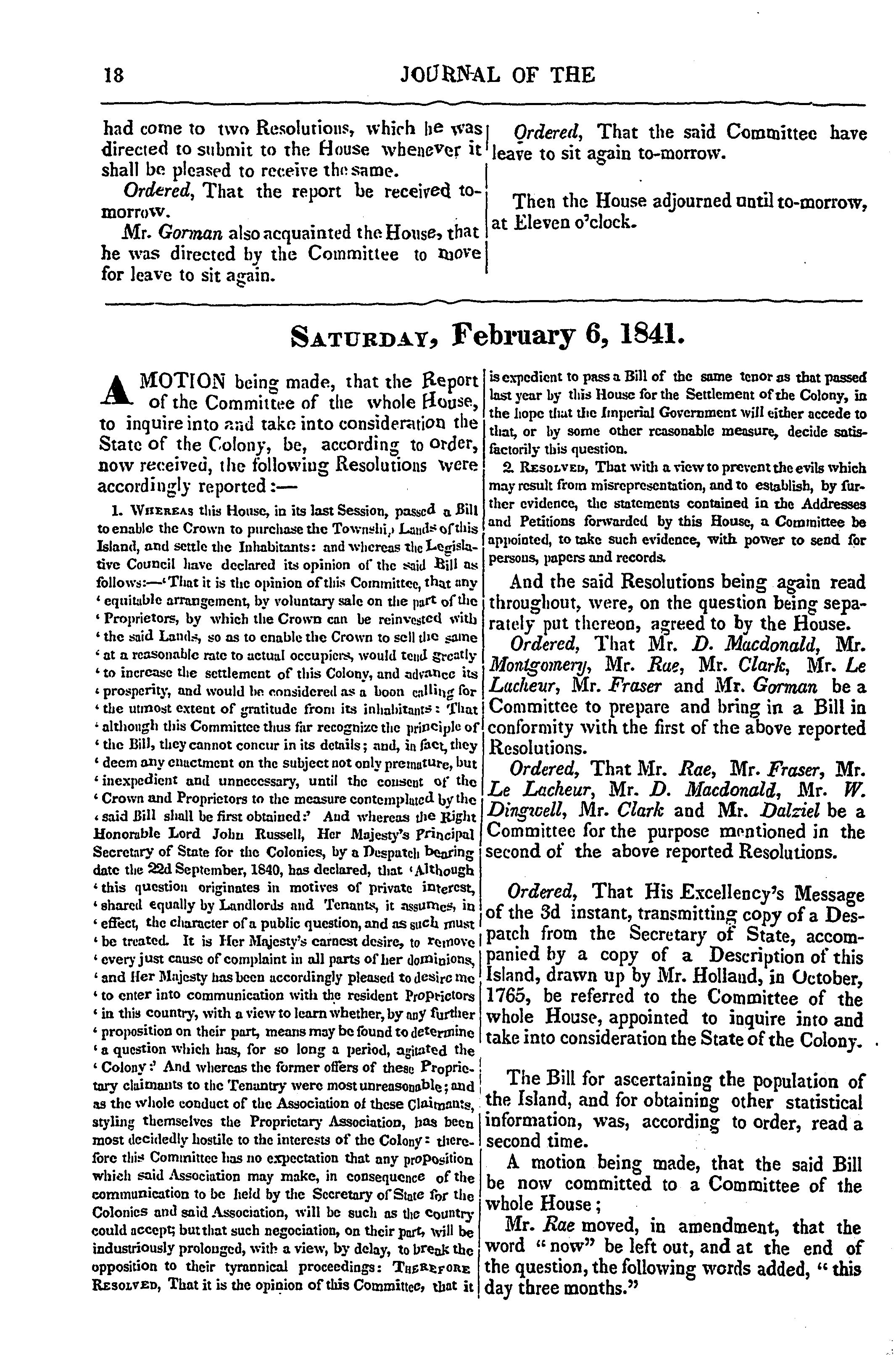 Journal of the House of Assembly of Prince Edward Island : anno quarto Victoriæ Reginæ, fourth session of the fifteenth General Assembly : 1841