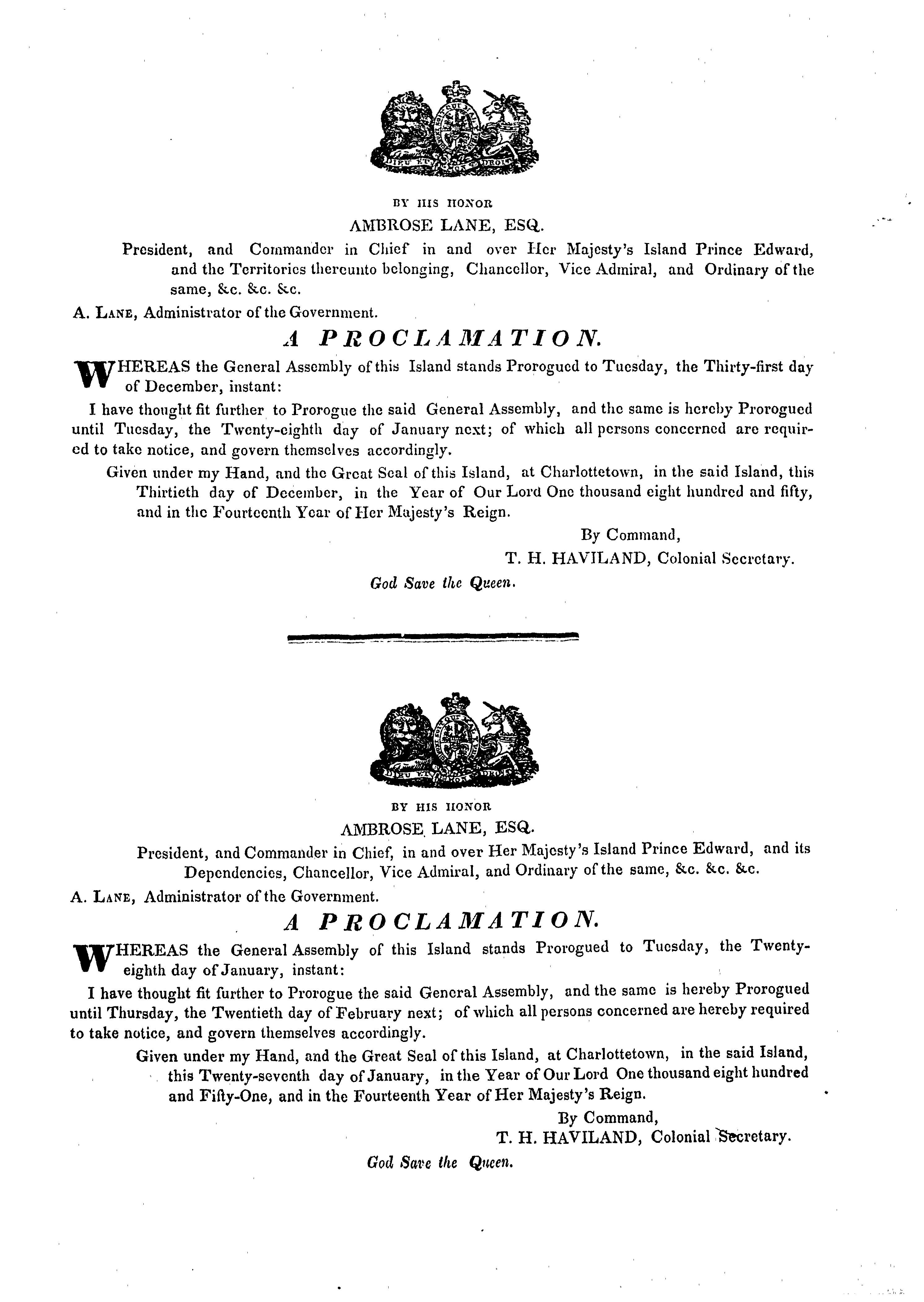 Journal of the House of Assembly of Prince Edward Island ... : Journal of the House of Assembly of Prince Edward Island : anno decimo quarto, Victoriæ Reginæ, third session of the eighteenth General Assembly : 1851