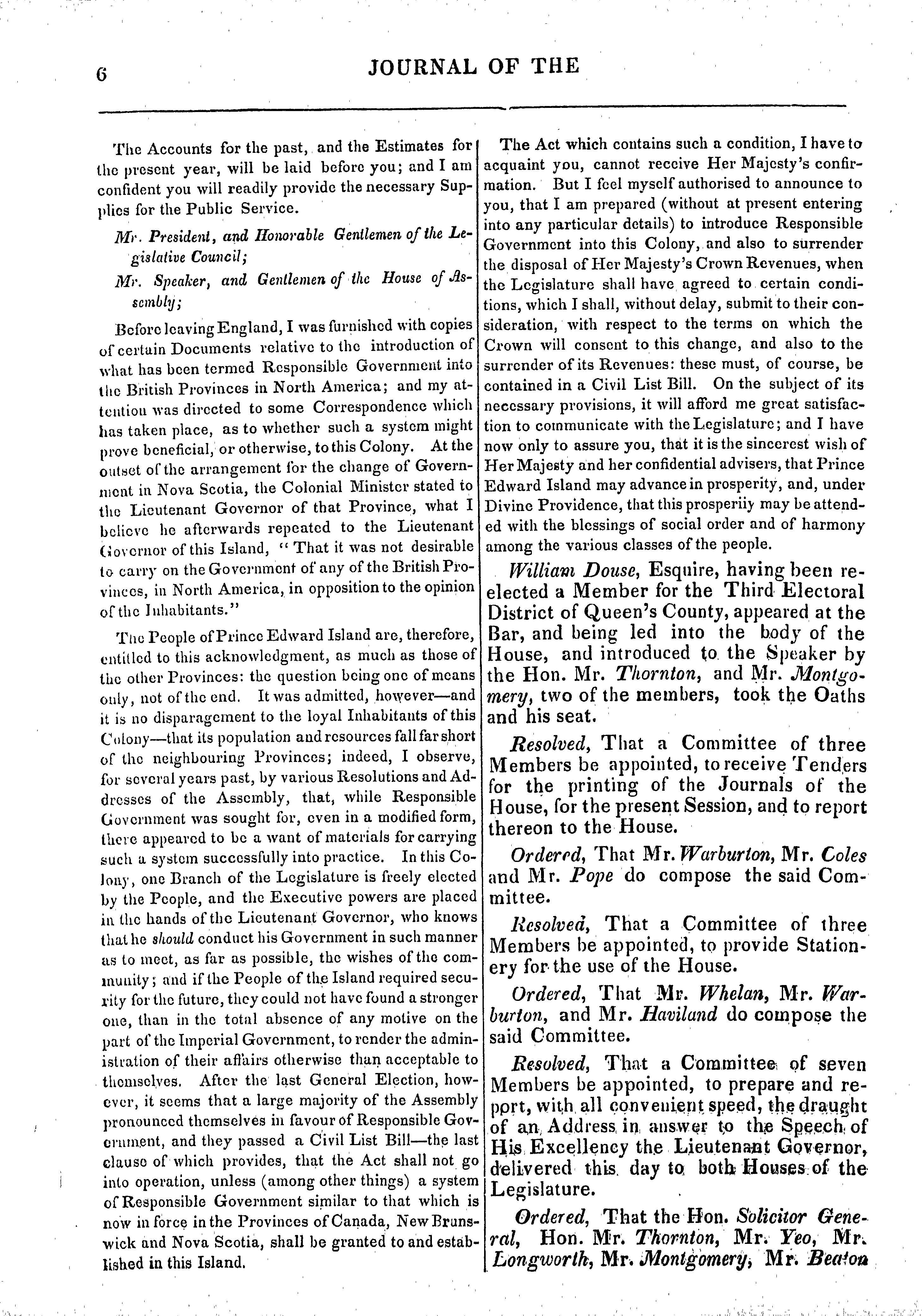 Journal of the House of Assembly of Prince Edward Island : anno decimo quarto, Victoriæ Reginæ, third session of the eighteenth General Assembly : 1851