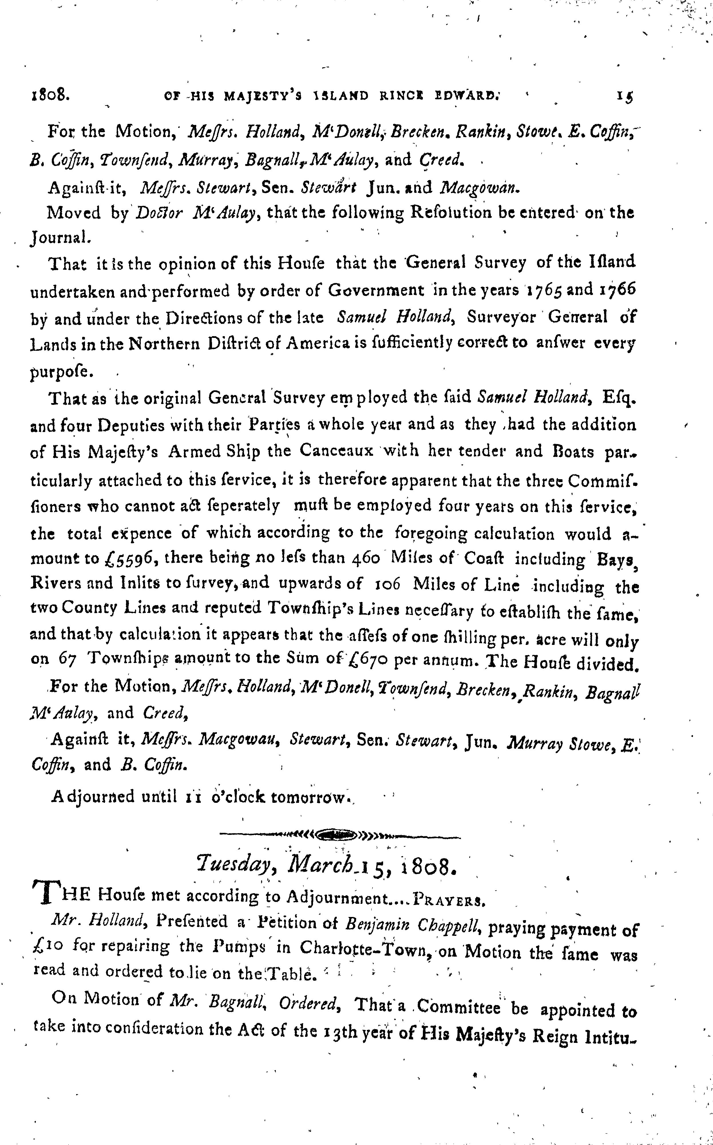 - Journal of the House of Assembly of His Majesty's Island Prince Edward : anno quadragesimo octavo Regis Georgii III, second session of the eighth General Assembly : 1808