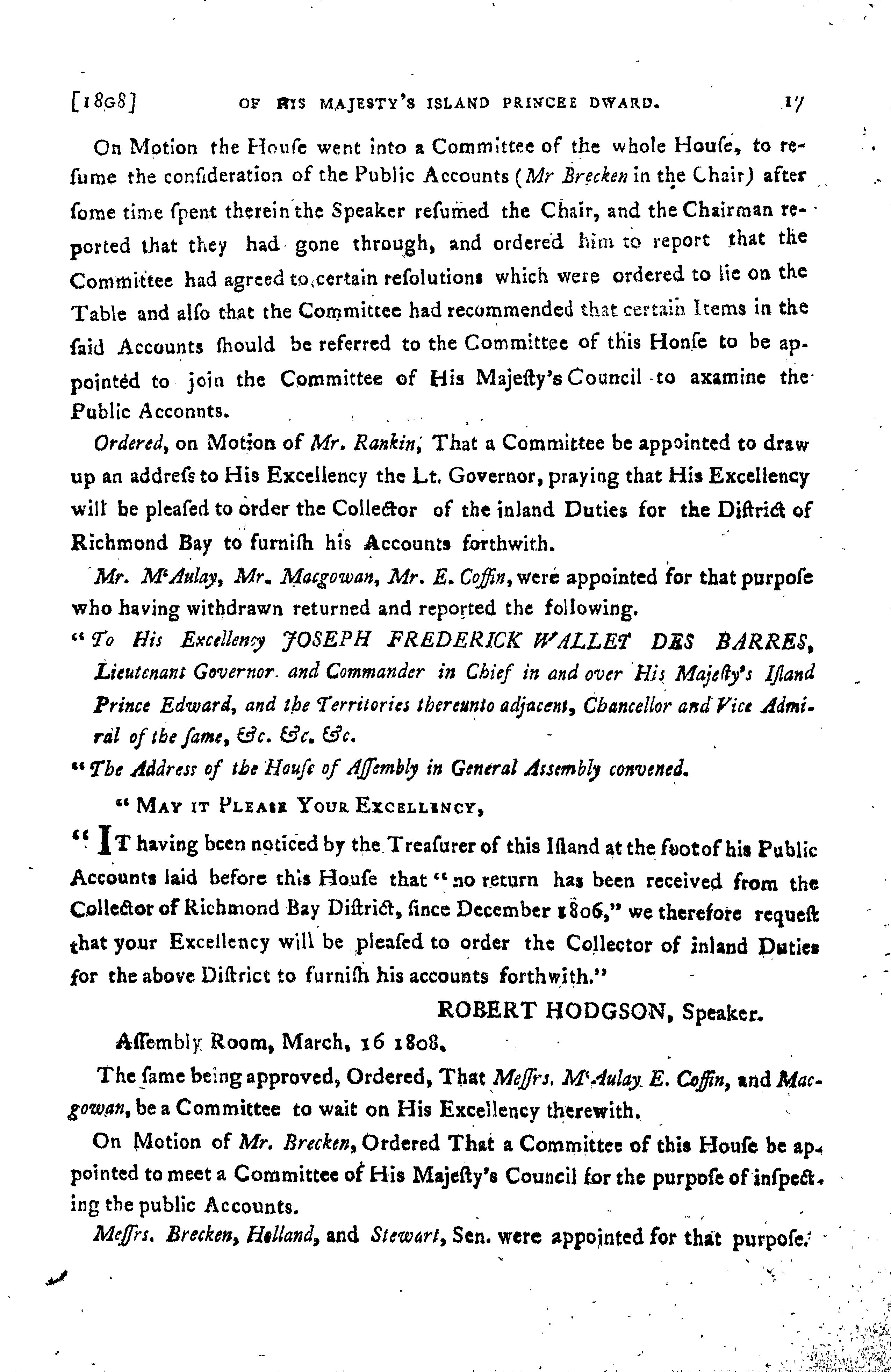 - Journal of the House of Assembly of His Majesty's Island Prince Edward : anno quadragesimo octavo Regis Georgii III, second session of the eighth General Assembly : 1808