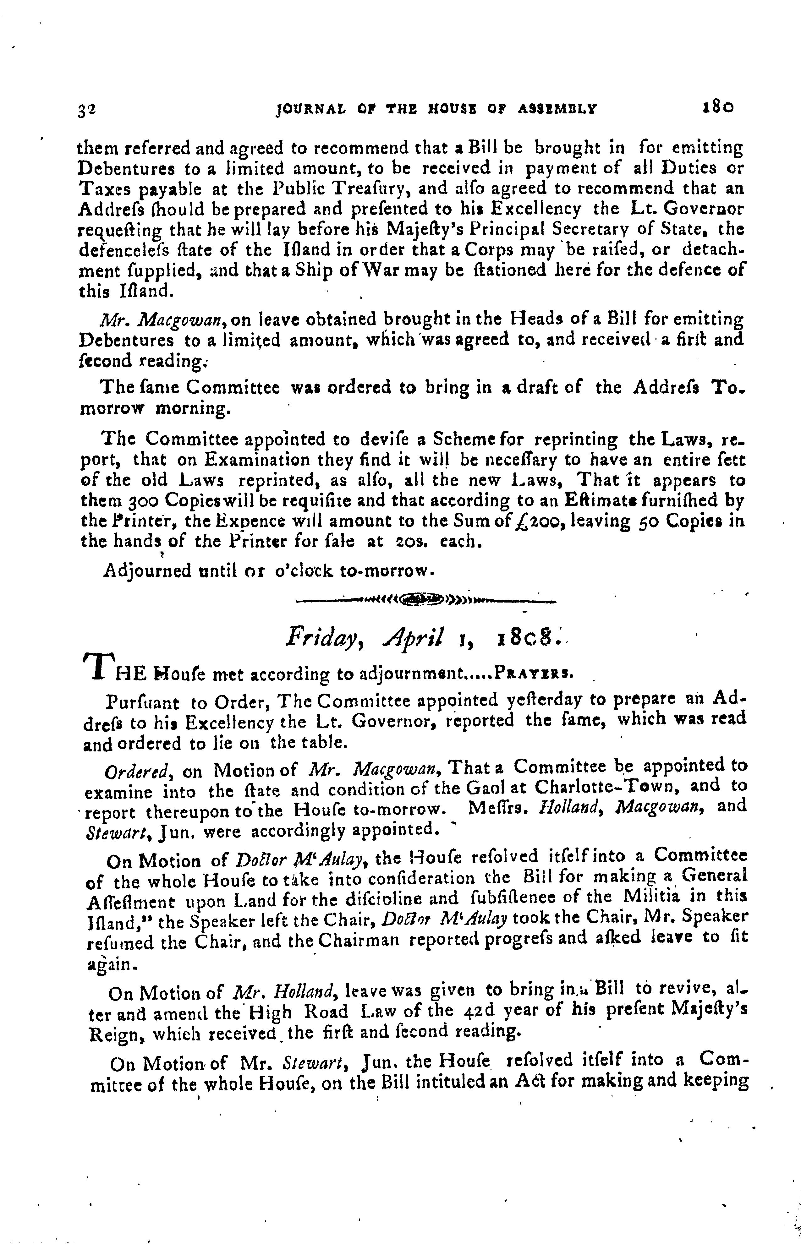 - Journal of the House of Assembly of His Majesty's Island Prince Edward : anno quadragesimo octavo Regis Georgii III, second session of the eighth General Assembly : 1808