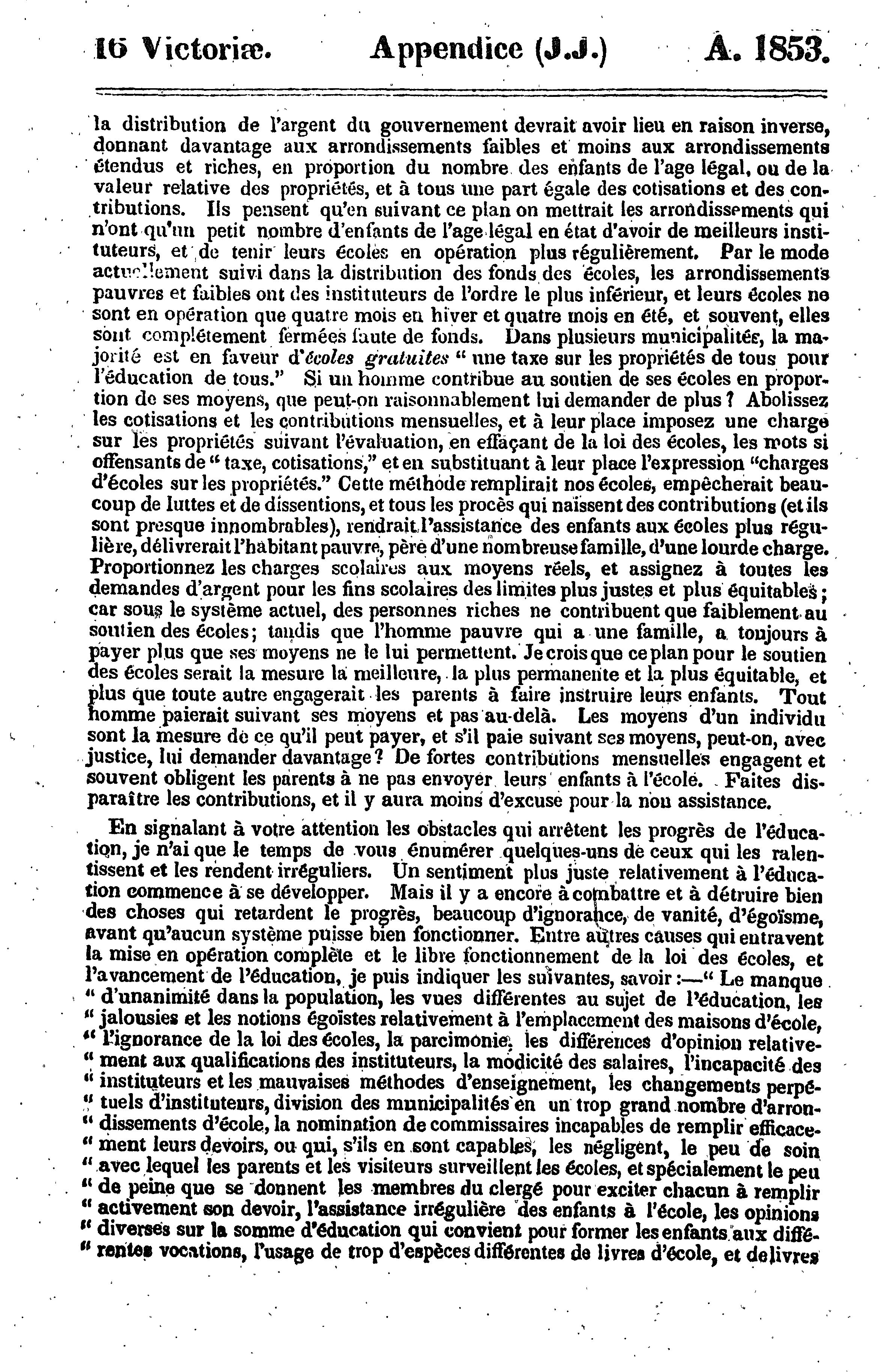 Appendice du onzième volume des journaux de l'Assemblée législative de la Province du Canada, depuis le 19 août 1852, jusqu'au 14 juin 1853, ces deux jours inclus, et dans la seizième année du règne de notre souveraine dame la Reine Victoria, étant la première session du quatrième Parlement provincial du Canada : 1852/53 (pt. 5)