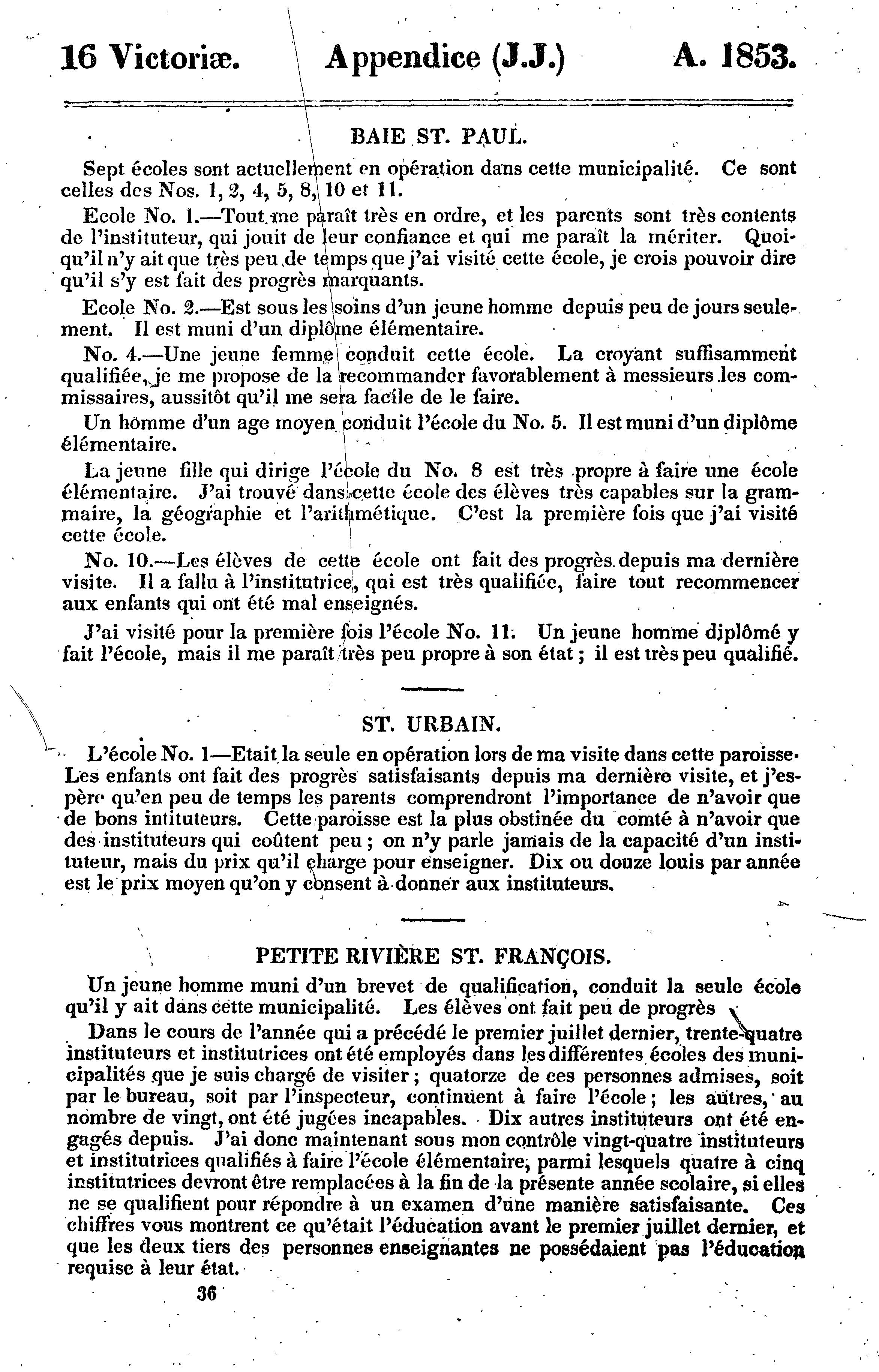 Appendice du onzième volume des journaux de l'Assemblée législative de la Province du Canada, depuis le 19 août 1852, jusqu'au 14 juin 1853, ces deux jours inclus, et dans la seizième année du règne de notre souveraine dame la Reine Victoria, étant la première session du quatrième Parlement provincial du Canada : 1852/53 (pt. 5)