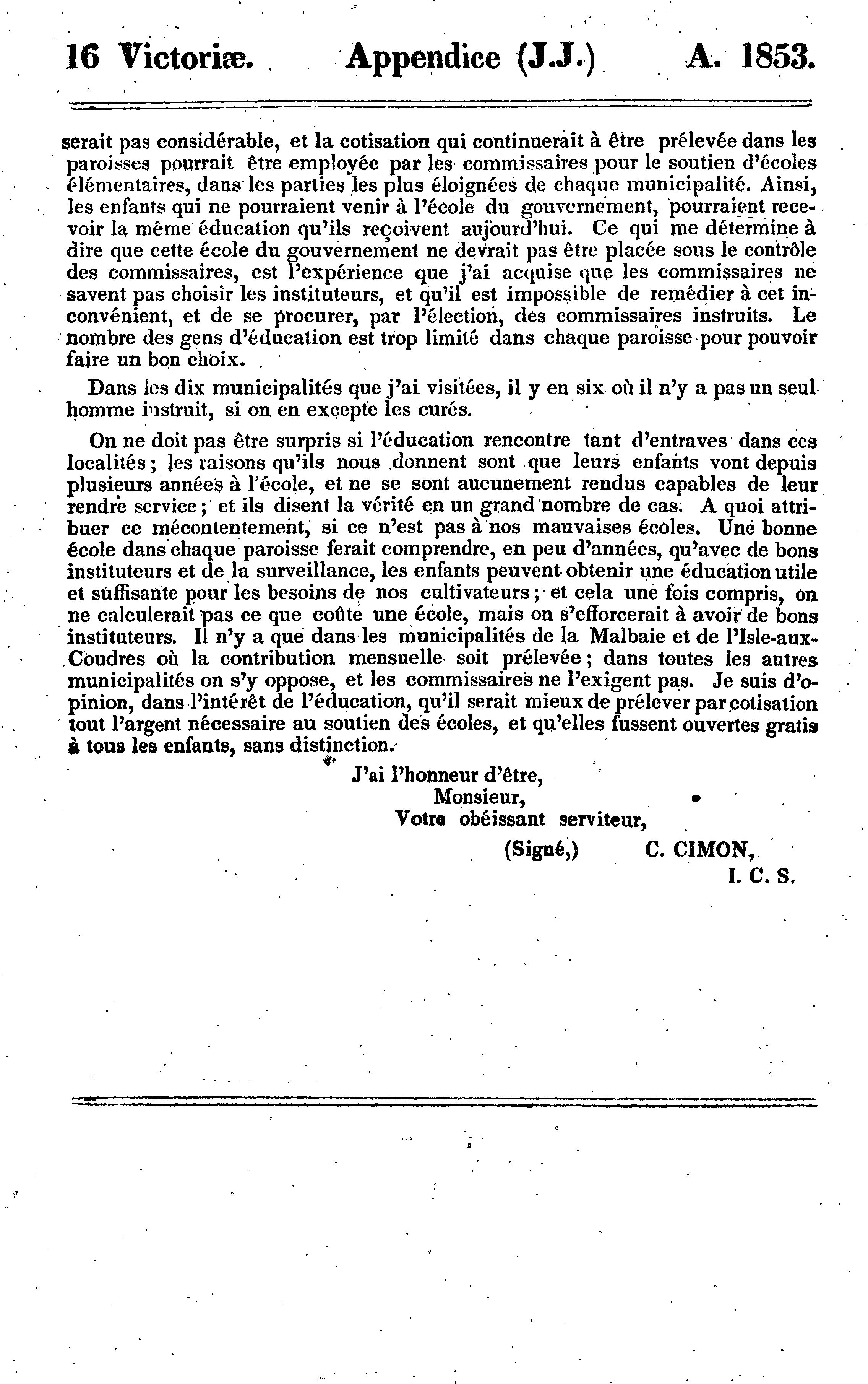 Appendice du onzième volume des journaux de l'Assemblée législative de la Province du Canada, depuis le 19 août 1852, jusqu'au 14 juin 1853, ces deux jours inclus, et dans la seizième année du règne de notre souveraine dame la Reine Victoria, étant la première session du quatrième Parlement provincial du Canada : 1852/53 (pt. 5)