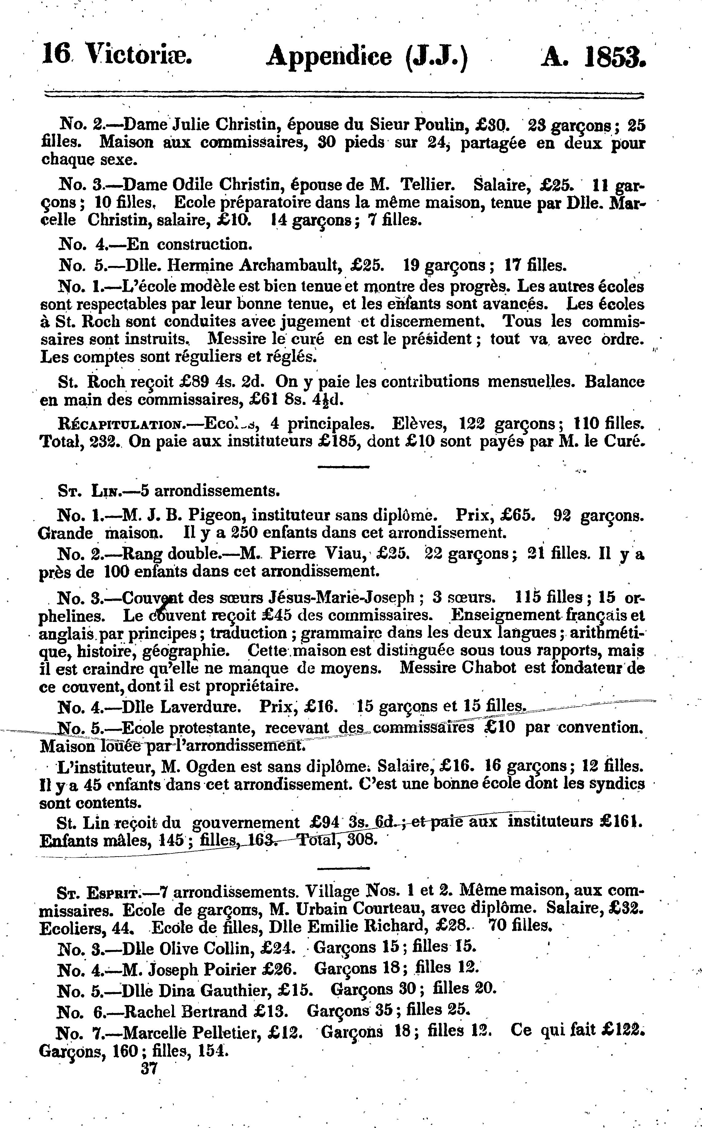 Appendice du onzième volume des journaux de l'Assemblée législative de la Province du Canada, depuis le 19 août 1852, jusqu'au 14 juin 1853, ces deux jours inclus, et dans la seizième année du règne de notre souveraine dame la Reine Victoria, étant la première session du quatrième Parlement provincial du Canada : 1852/53 (pt. 5)