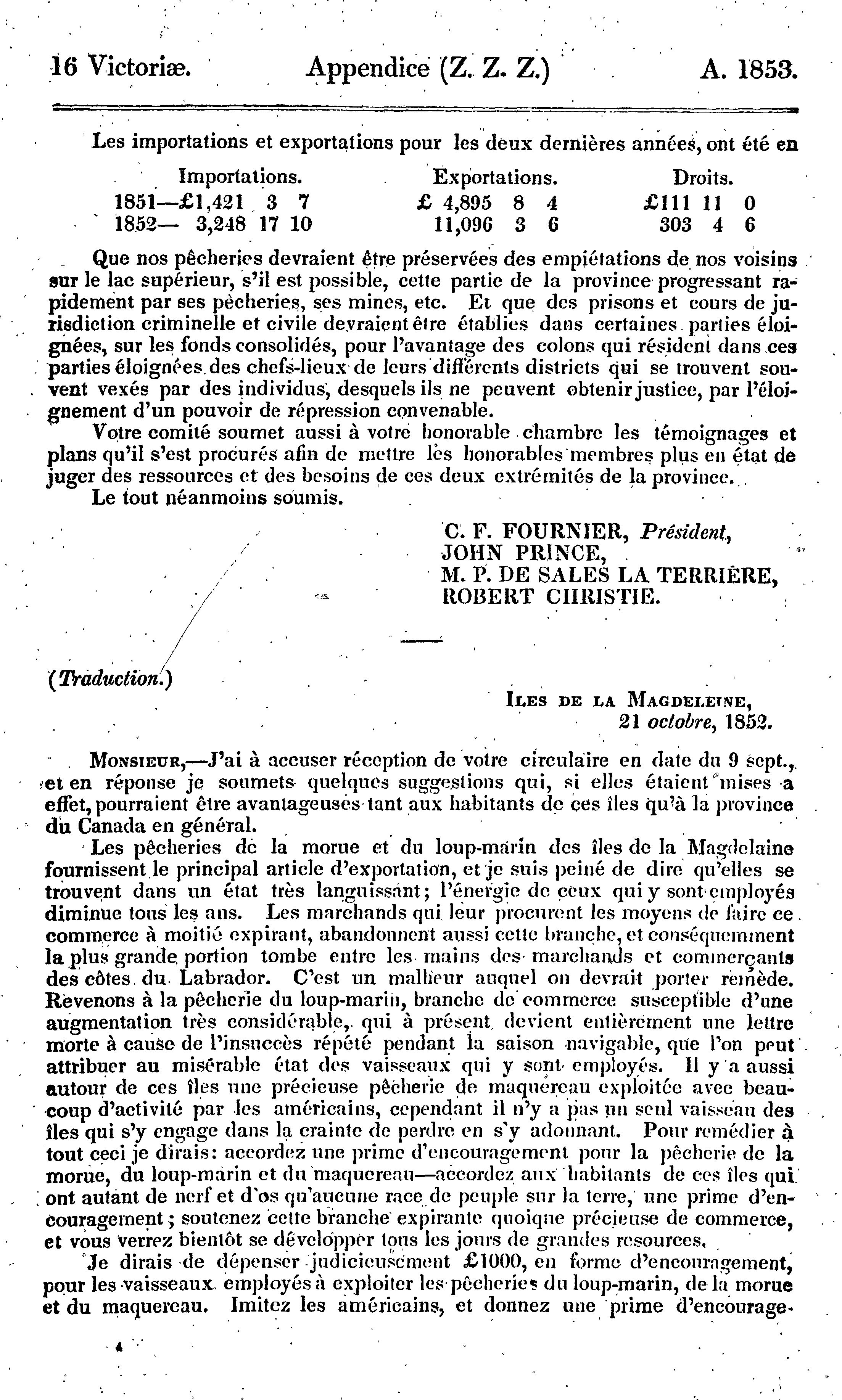 Appendice du onzième volume des journaux de l'Assemblée législative de la Province du Canada, depuis le 19 août 1852, jusqu'au 14 juin 1853, ces deux jours inclus, et dans la seizième année du règne de notre souveraine dame la Reine Victoria, étant la première session du quatrième Parlement provincial du Canada : 1852/53 (pt. 8)