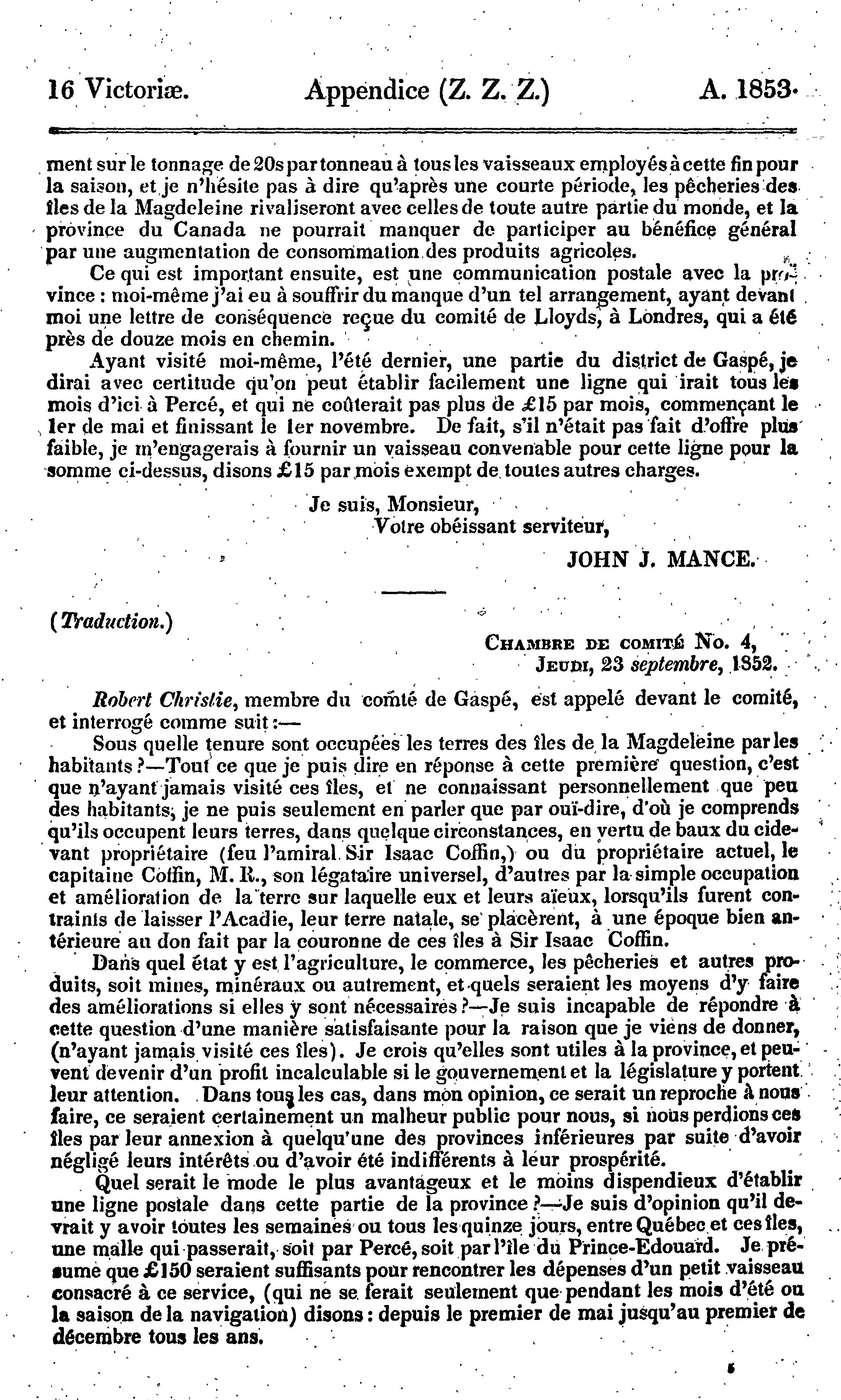 Appendice du onzième volume des journaux de l'Assemblée législative de la Province du Canada, depuis le 19 août 1852, jusqu'au 14 juin 1853, ces deux jours inclus, et dans la seizième année du règne de notre souveraine dame la Reine Victoria, étant la première session du quatrième Parlement provincial du Canada : 1852/53 (pt. 8)