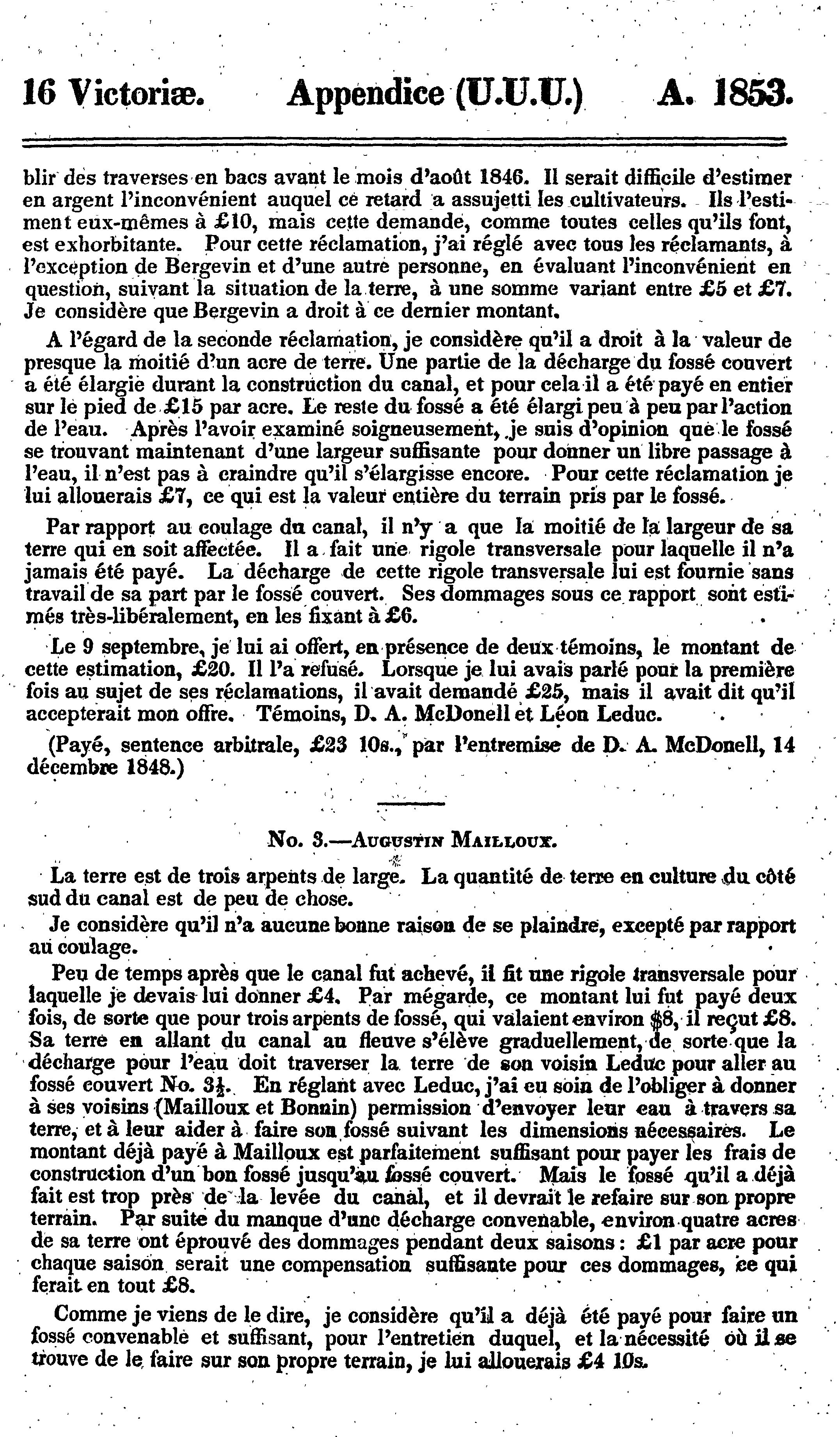 Appendice du ... des Journaux de l'Assemblée législative de la Province du Canada ... : Appendice du onzième volume des journaux de l'Assemblée législative de la Province du Canada, depuis le 19 août 1852, jusqu'au 14 juin 1853, ces deux jours inclus, et dans la seizième année du règne de notre souveraine dame la Reine Victoria, étant la première session du quatrième Parlement provincial du Canada : 1852/53 (pt. 8)
