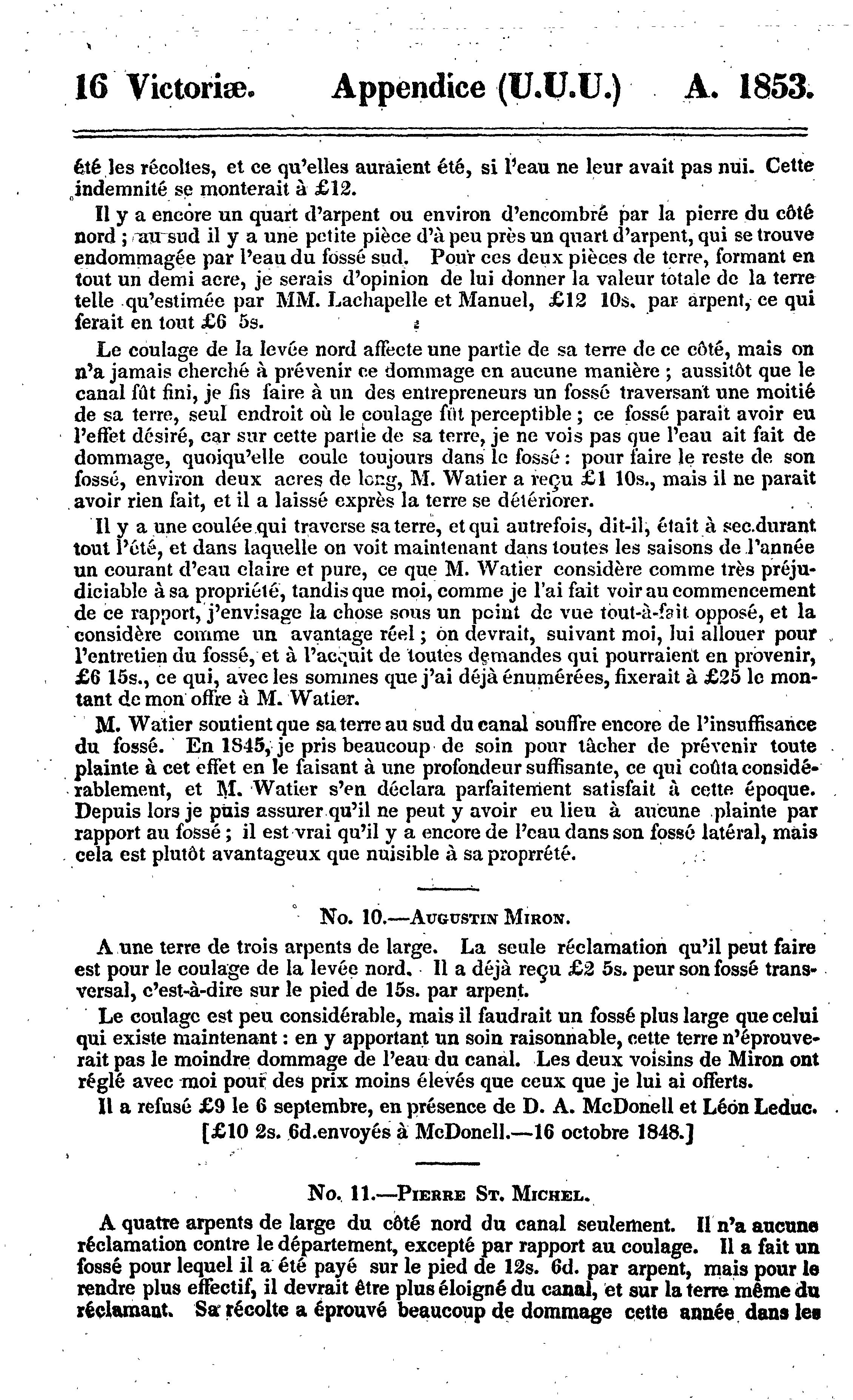 Appendice du onzième volume des journaux de l'Assemblée législative de la Province du Canada, depuis le 19 août 1852, jusqu'au 14 juin 1853, ces deux jours inclus, et dans la seizième année du règne de notre souveraine dame la Reine Victoria, étant la première session du quatrième Parlement provincial du Canada : 1852/53 (pt. 8)