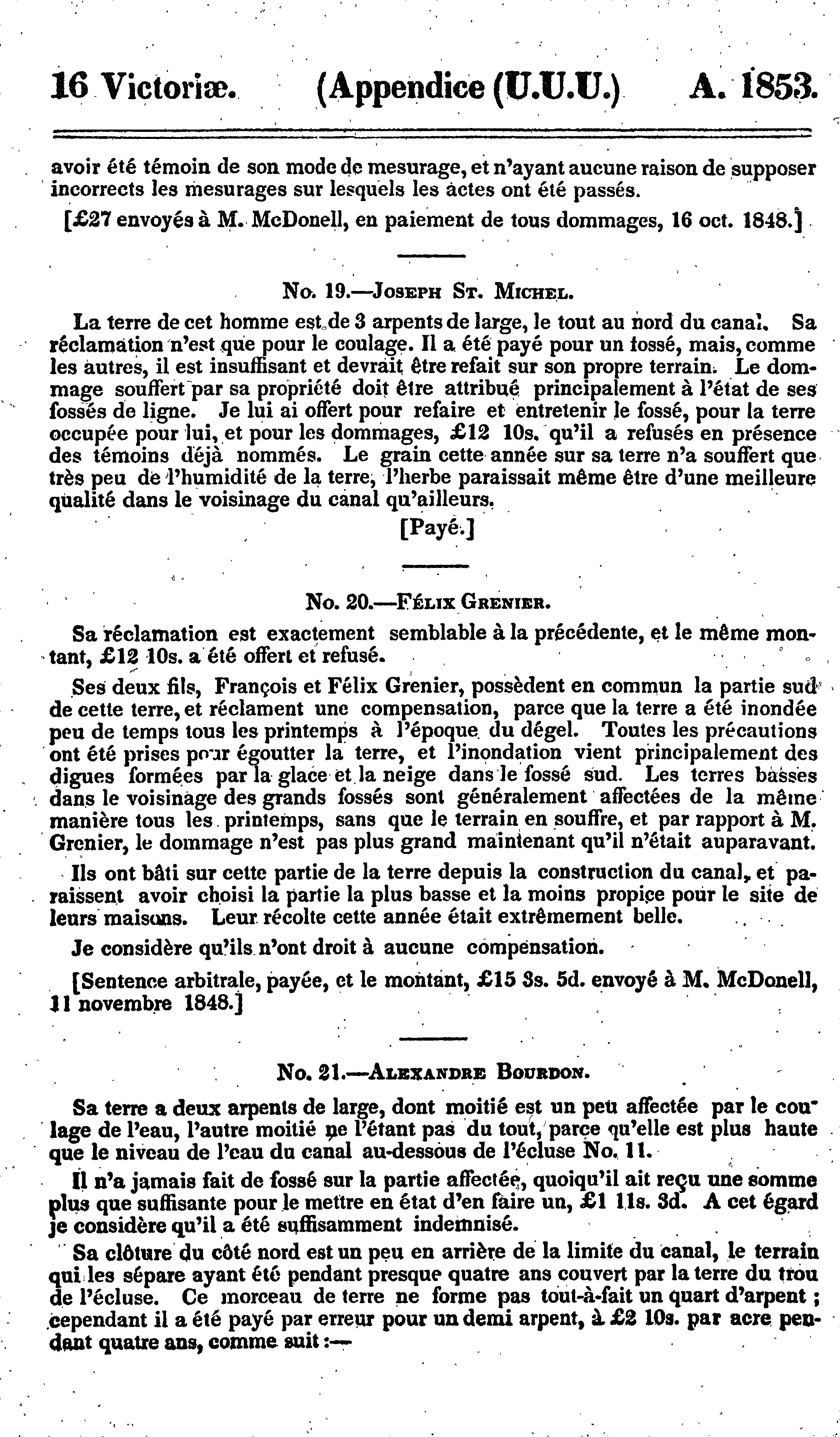 Appendice du onzième volume des journaux de l'Assemblée législative de la Province du Canada, depuis le 19 août 1852, jusqu'au 14 juin 1853, ces deux jours inclus, et dans la seizième année du règne de notre souveraine dame la Reine Victoria, étant la première session du quatrième Parlement provincial du Canada : 1852/53 (pt. 8)