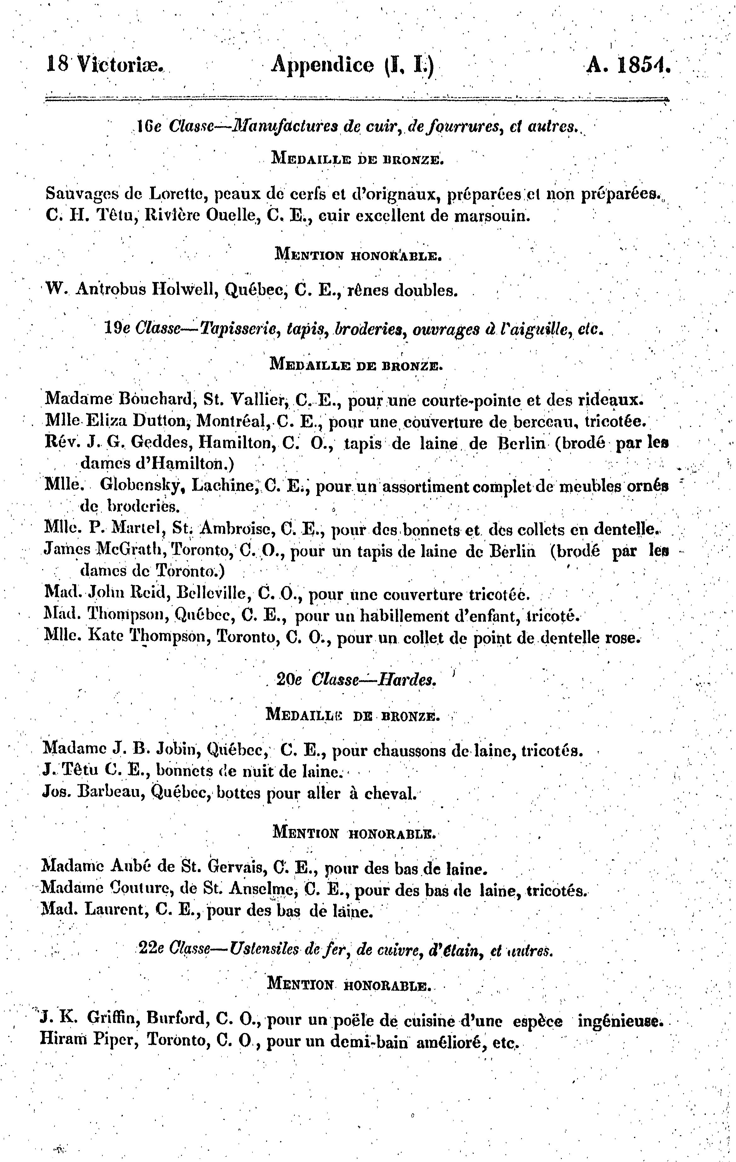 Appendice du treizième volume des journaux de l'Assemblée législative de la Province du Canada, du 5 septembre 1854, au 30 mai 1855, ces deux jours inclus, dans la dix-huitième année du règne de notre souveraine dame la Reine Victoria, 1re session du 5me Parlement provincial du Canada : 1854/55 (pt. 10)