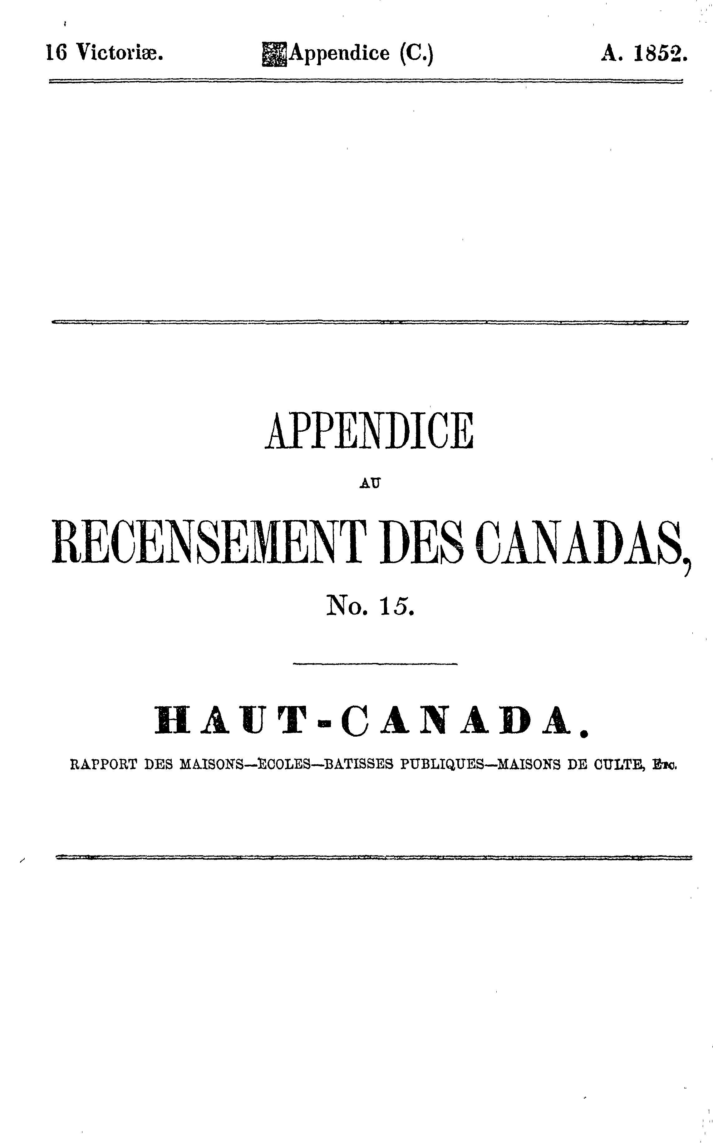 Appendice du treizième volume des journaux de l'Assemblée législative de la Province du Canada, depuis le 5 septembre 1854, jusqu'au 30 mai 1855, ces deux jours inclus, dans la dix-huitième année du règne de notre souveraine dame la Reine Victoria, 1re session du 5me Parlement provincial du Canada : 1854/55 (pt. 5)