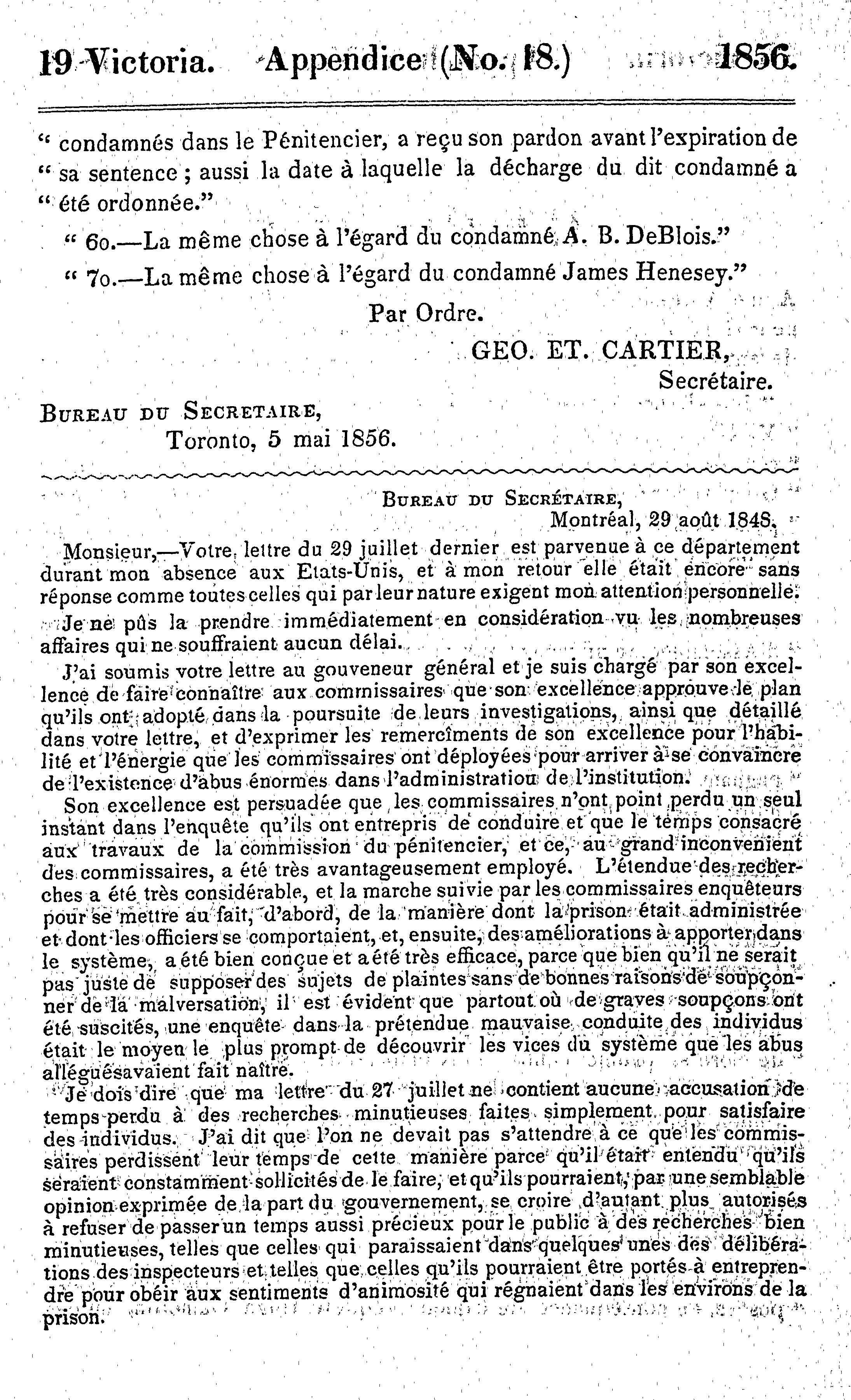 Appendice du quatorzième volume des journaux de l'Assemblée législative de la Province du Canada, depuis le 15 février jusqu'au 1er juillet 1856, ces deux jours inclus, dans la dix-neuvième et vingtième années du règne de notre souveraine dame la Reine Victoria, étant la 2me session du 5me Parlement provincial du Canada : 1856 (pt. 3)