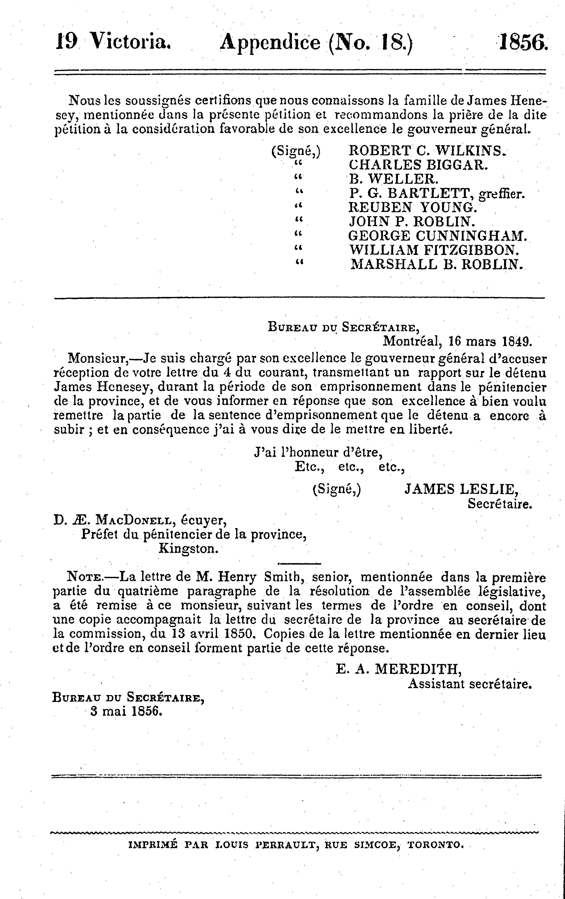 Appendice du quatorzième volume des journaux de l'Assemblée législative de la Province du Canada, depuis le 15 février jusqu'au 1er juillet 1856, ces deux jours inclus, dans la dix-neuvième et vingtième années du règne de notre souveraine dame la Reine Victoria, étant la 2me session du 5me Parlement provincial du Canada : 1856 (pt. 3)