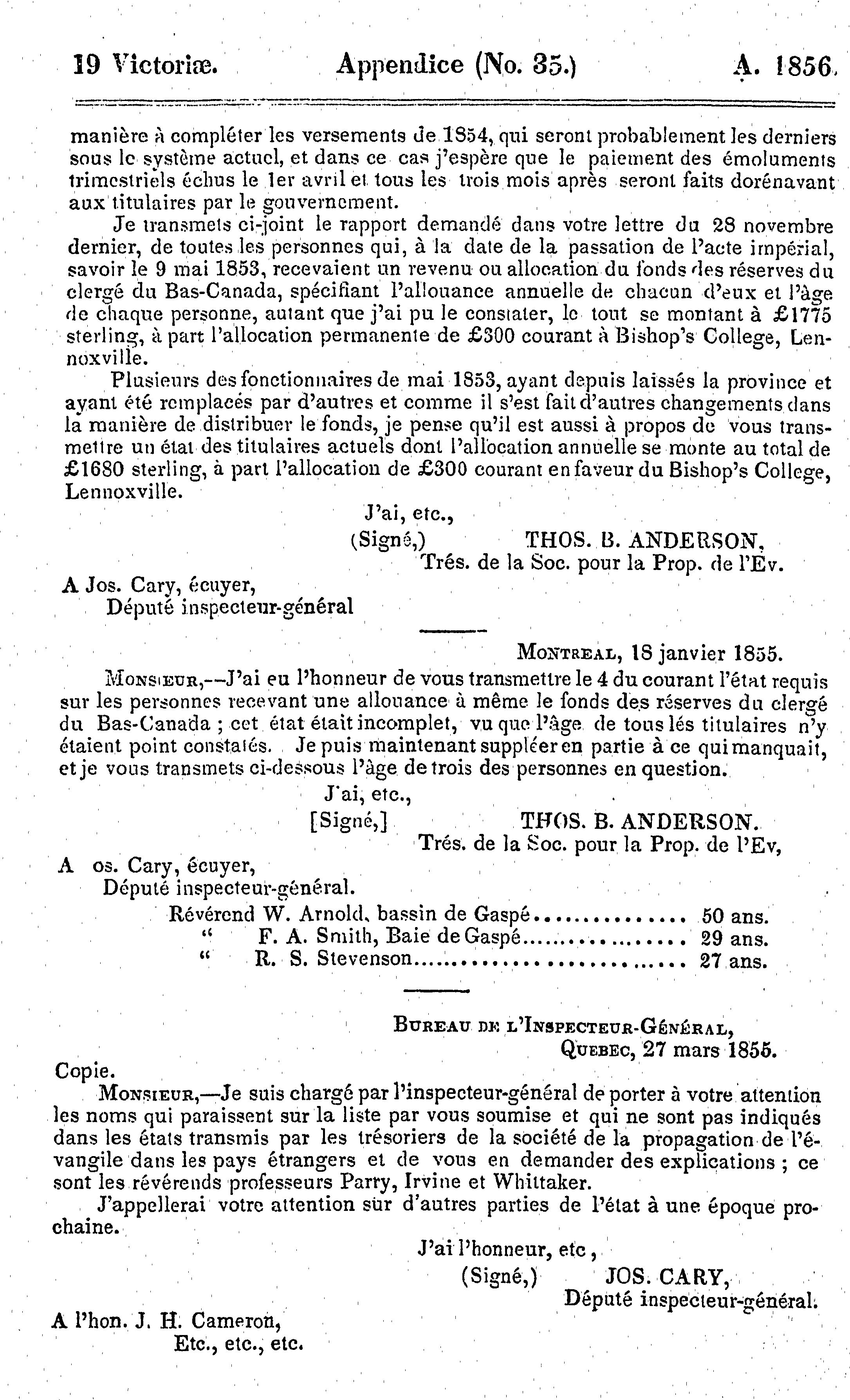 Appendice du ... des Journaux de l'Assemblée législative de la Province du Canada ... : Appendice du quatorzième volume des journaux de l'Assemblée législative de la Province du Canada, depuis le 15 février jusqu'au 1er juillet 1856, ces deux jours inclus, dans la dix-neuvième et vingtième années du règne de notre souveraine dame la Reine Victoria, étant la 2me session du 5me Parlement provincial du Canada : 1856 (pt. 5)