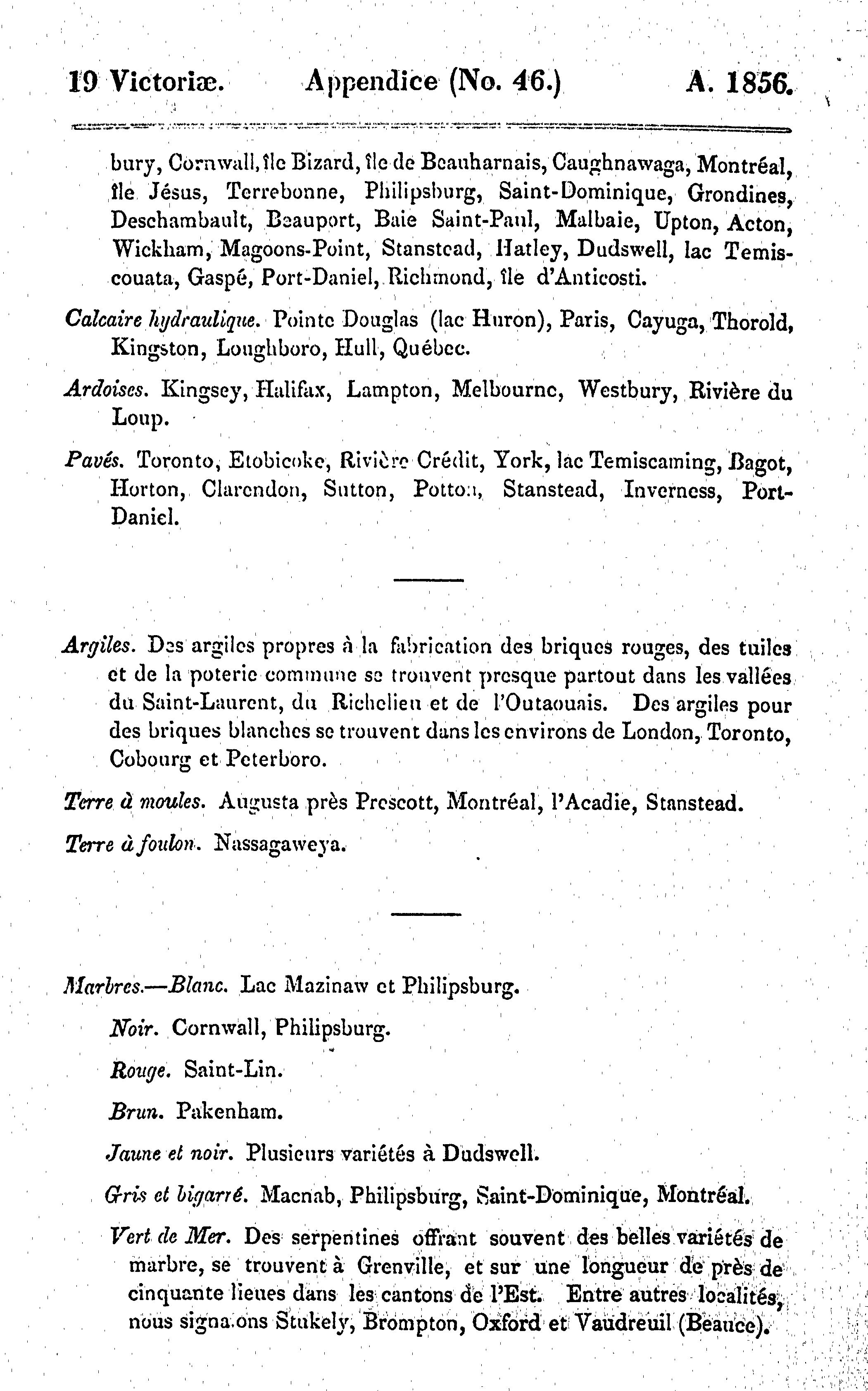 Appendice du quatorzième volume des journaux de l'Assemblée législative de la Province du Canada, depuis le 15 février jusqu'au 1er juillet 1856, ces deux jours inclus, dans la dix-neuvième et vingtième années du règne de notre souveraine dame la Reine Victoria, étant la 2me session du 5me Parlement provincial du Canada : 1856 (pt. 5)