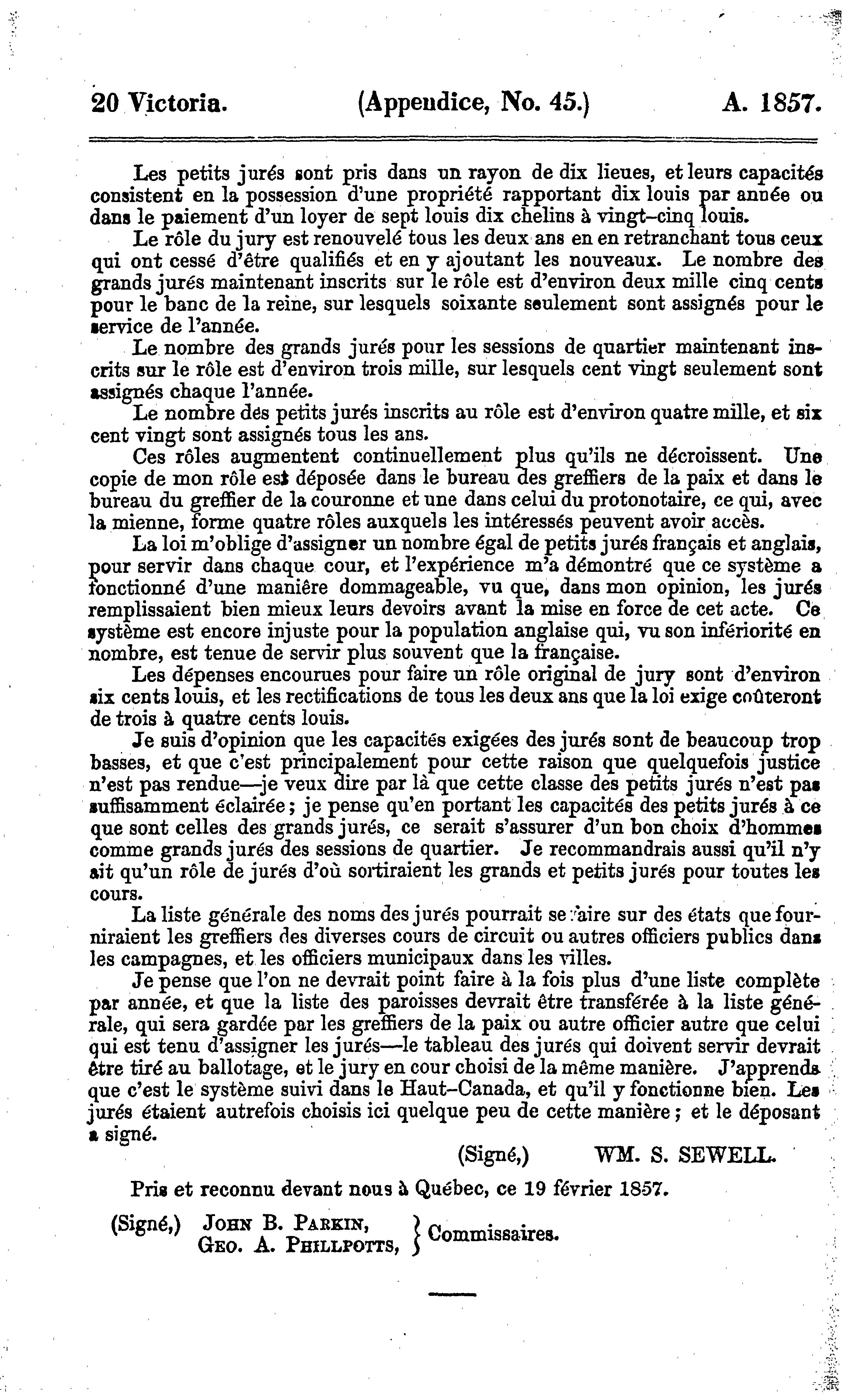 Appendice du quinzième volume des journaux de l'Assemblée législative de la Province du Canada, depuis le 26 février jusqu'au 10 juin 1857, inclusivement, dans la vingtième année du règne de notre souveraine dame la Reine Victoria, étant la 3me Session du 5me Parlement provincial du Canada : 1857 (pt. 8)