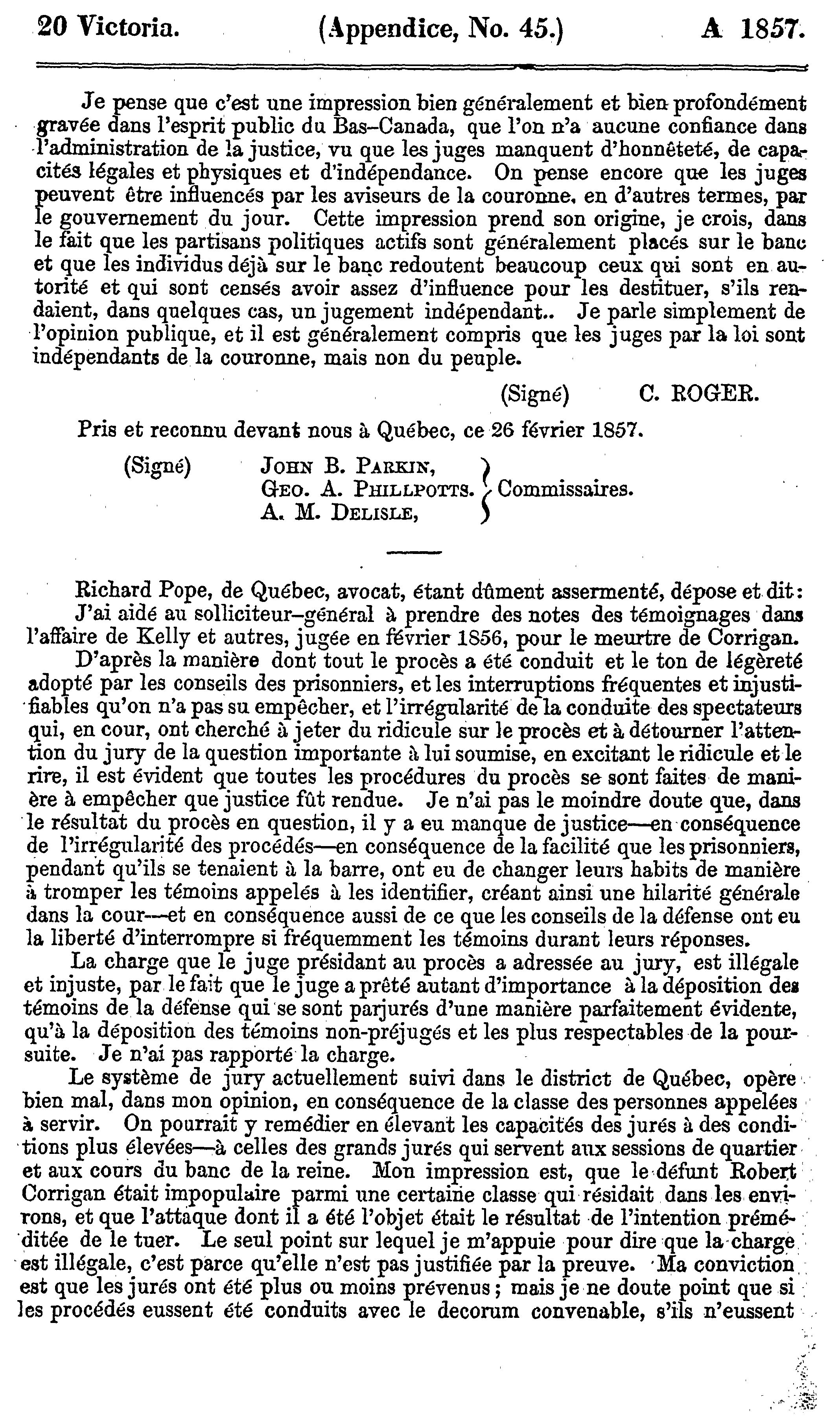 Appendice du quinzième volume des journaux de l'Assemblée législative de la Province du Canada, depuis le 26 février jusqu'au 10 juin 1857, inclusivement, dans la vingtième année du règne de notre souveraine dame la Reine Victoria, étant la 3me Session du 5me Parlement provincial du Canada : 1857 (pt. 8)