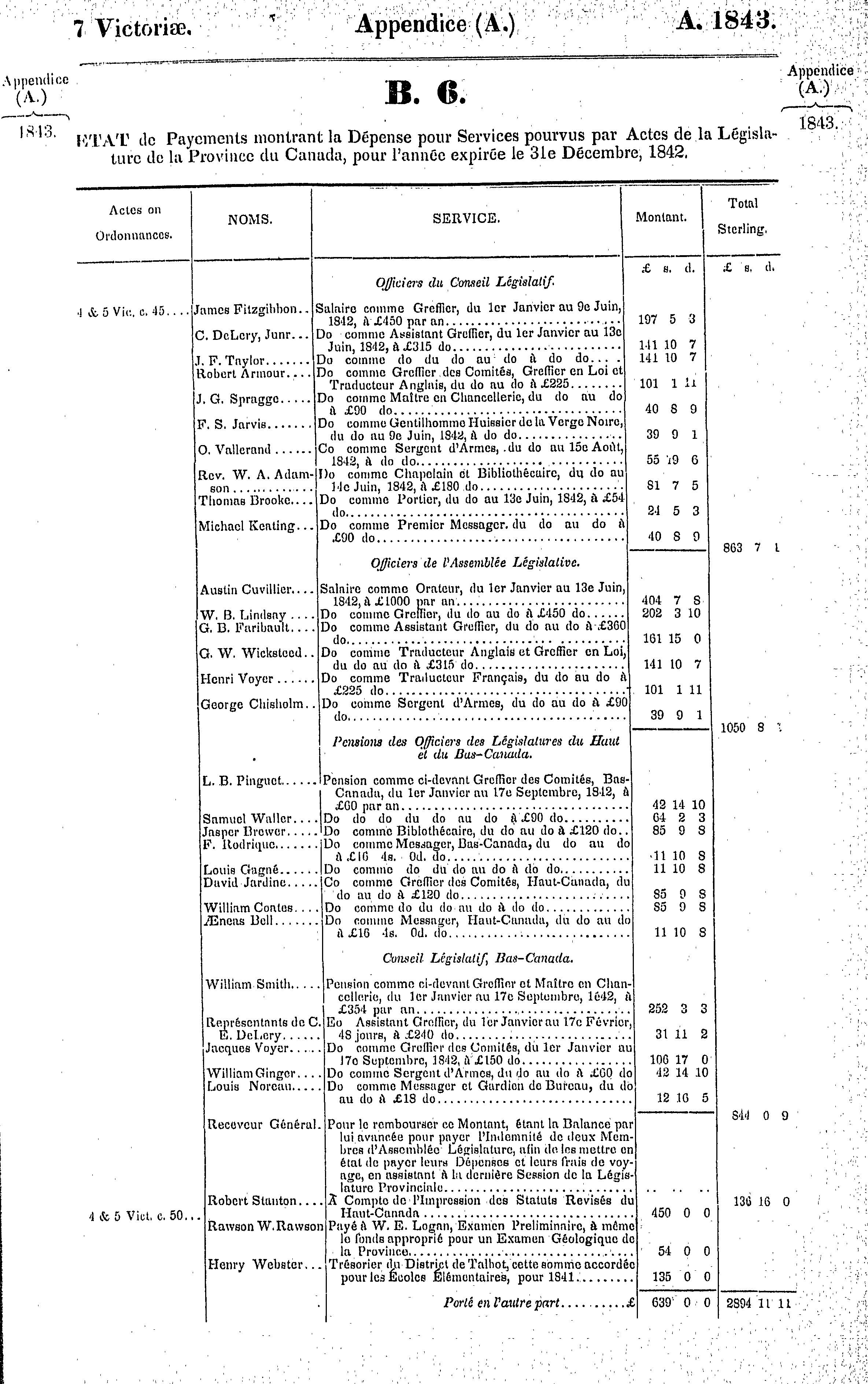 Appendice du troisième volume des journaux de l'Assemblée législative de la Province du Canada, du 28 septembre au 9 décembre, de l'année de notre seigneur 1843, et dans la septième année du règne de notre souveraine la Reine Victoria, troisième session du premier Parlement provincial du Canada : 1843 (pt. 1)