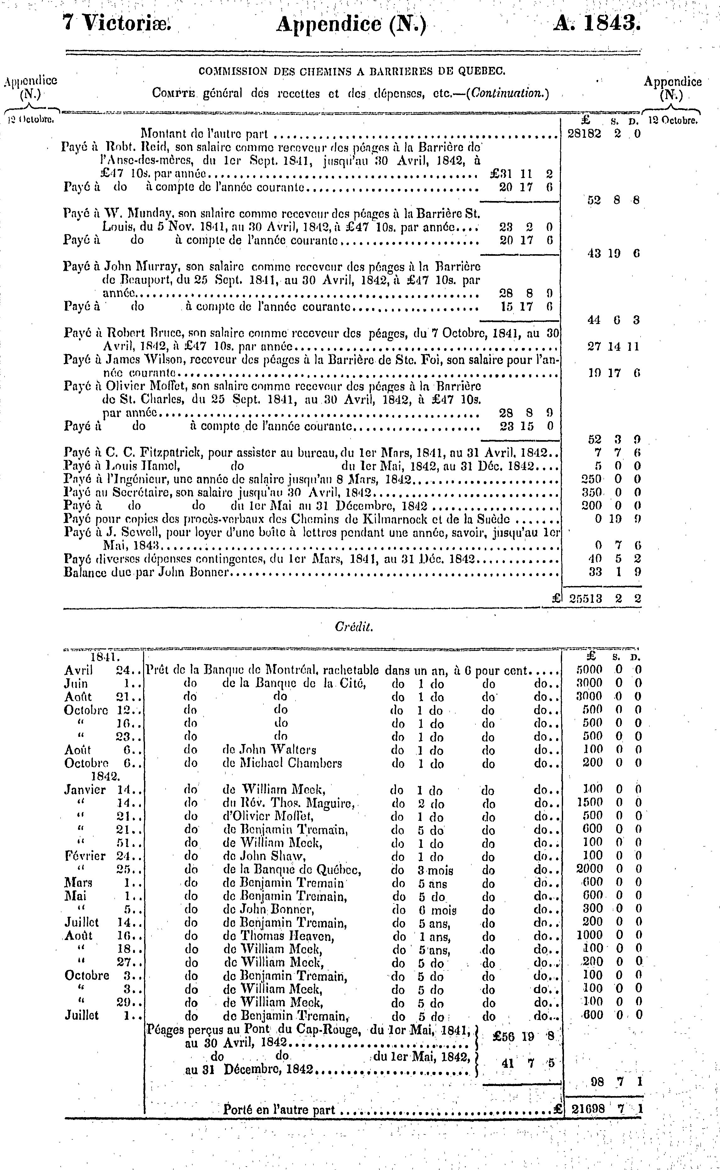 Appendice du troisième volume des journaux de l'Assemblée législative de la Province du Canada, du 28 septembre au 9 décembre, de l'année de notre seigneur 1843, et dans la septième année du règne de notre souveraine la Reine Victoria, troisième session du premier Parlement provincial du Canada : 1843 (pt. 1)