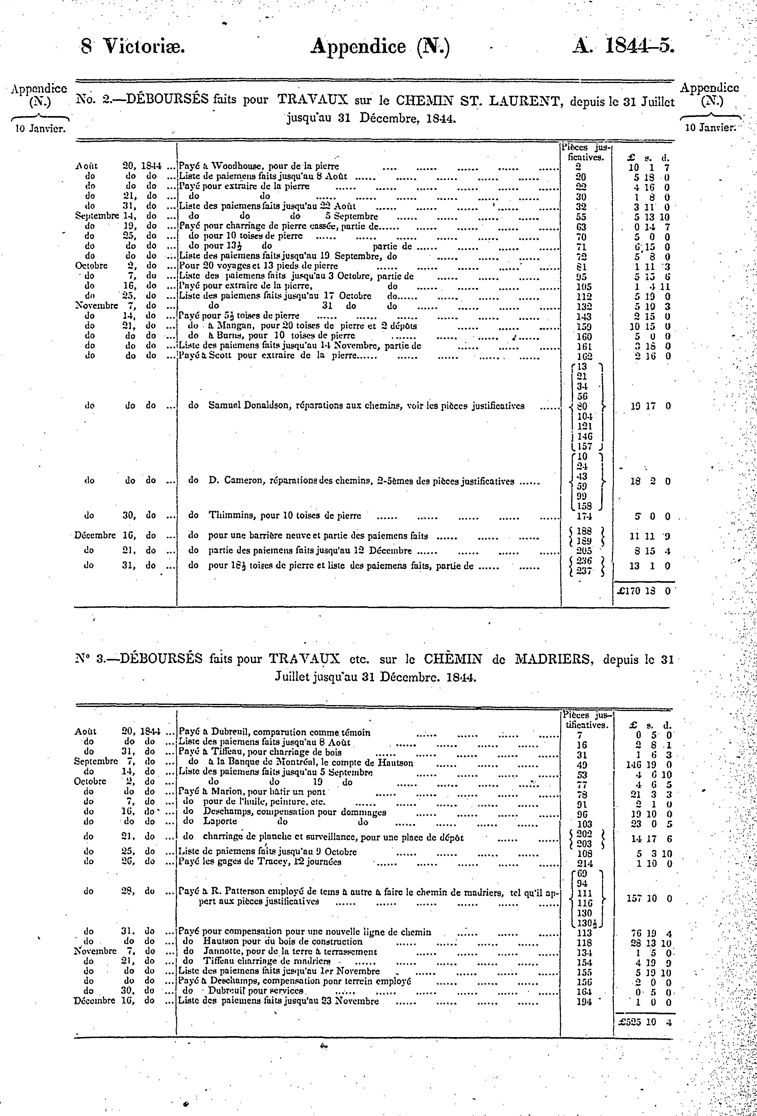 Appendice du quatrième volume des journaux de l'Assemblée législative de la Province du Canada, du 28 novembre 1844, au 29 mars 1845, ces deux jours compris et dans la huitième année du règne de notre souveraine dame la Reine Victoria, première session du second Parlement provincial du Canada : 1844/45 (pt. 1)