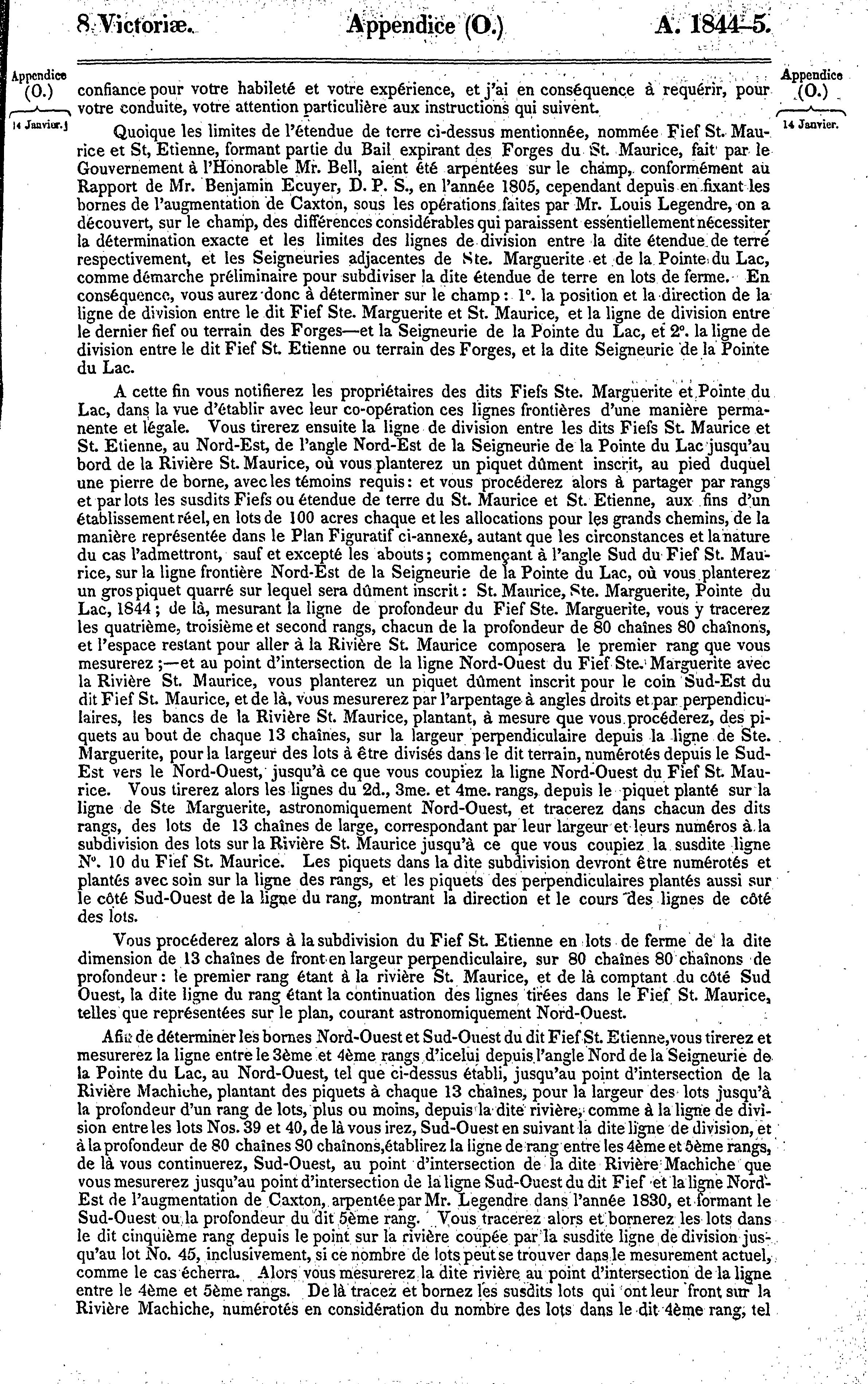 Appendice du quatrième volume des journaux de l'Assemblée législative de la Province du Canada, du 28 novembre 1844, au 29 mars 1845, ces deux jours compris et dans la huitième année du règne de notre souveraine dame la Reine Victoria, première session du second Parlement provincial du Canada : 1844/45 (pt. 1)