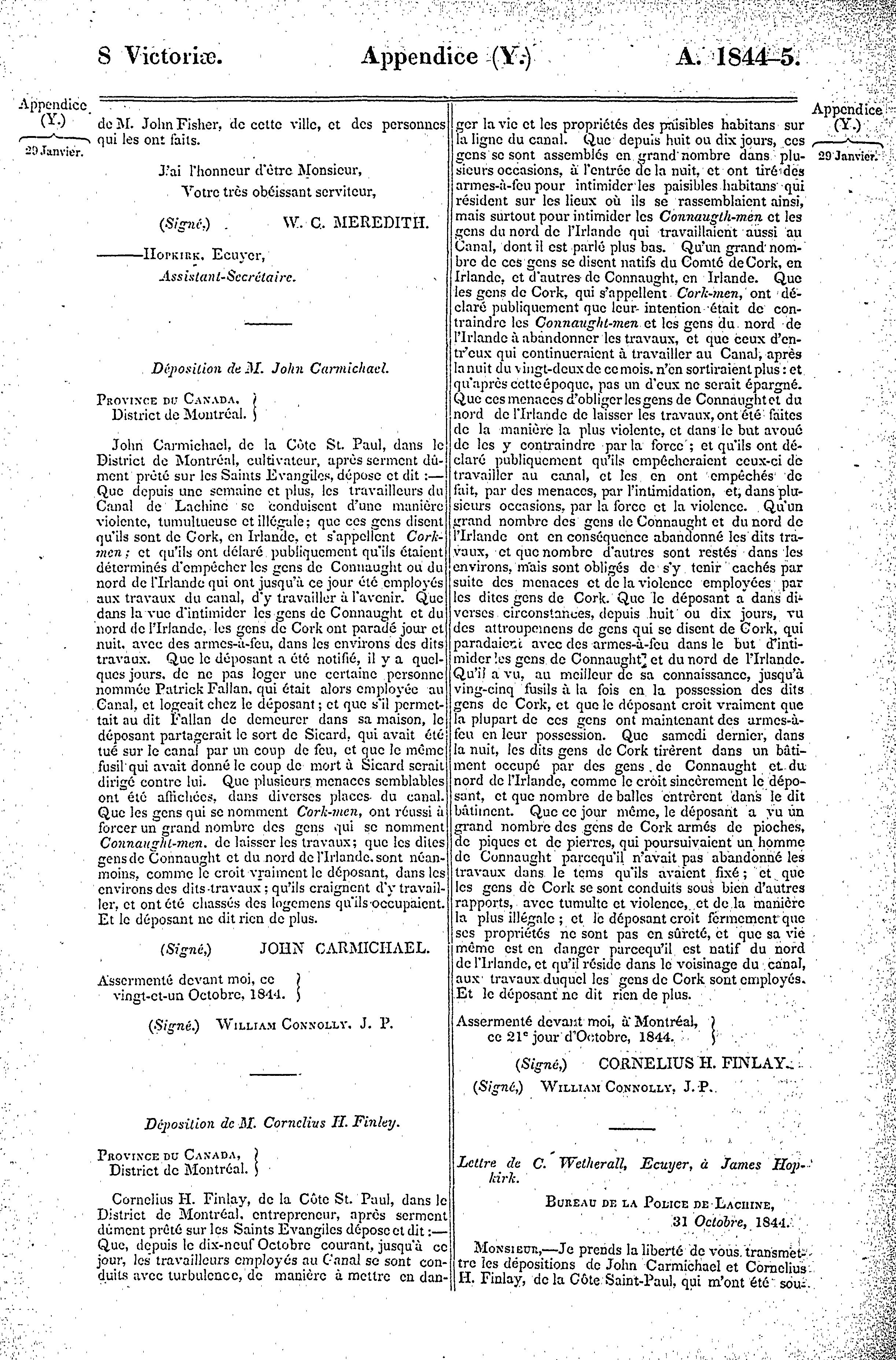 Appendice du quatrième volume des journaux de l'Assemblée législative de la Province du Canada, du 28 novembre 1844, au 29 mars 1845, ces deux jours compris et dans la huitième année du règne de notre souveraine dame la Reine Victoria, première session du second Parlement provincial du Canada : 1844/45 (pt. 1)