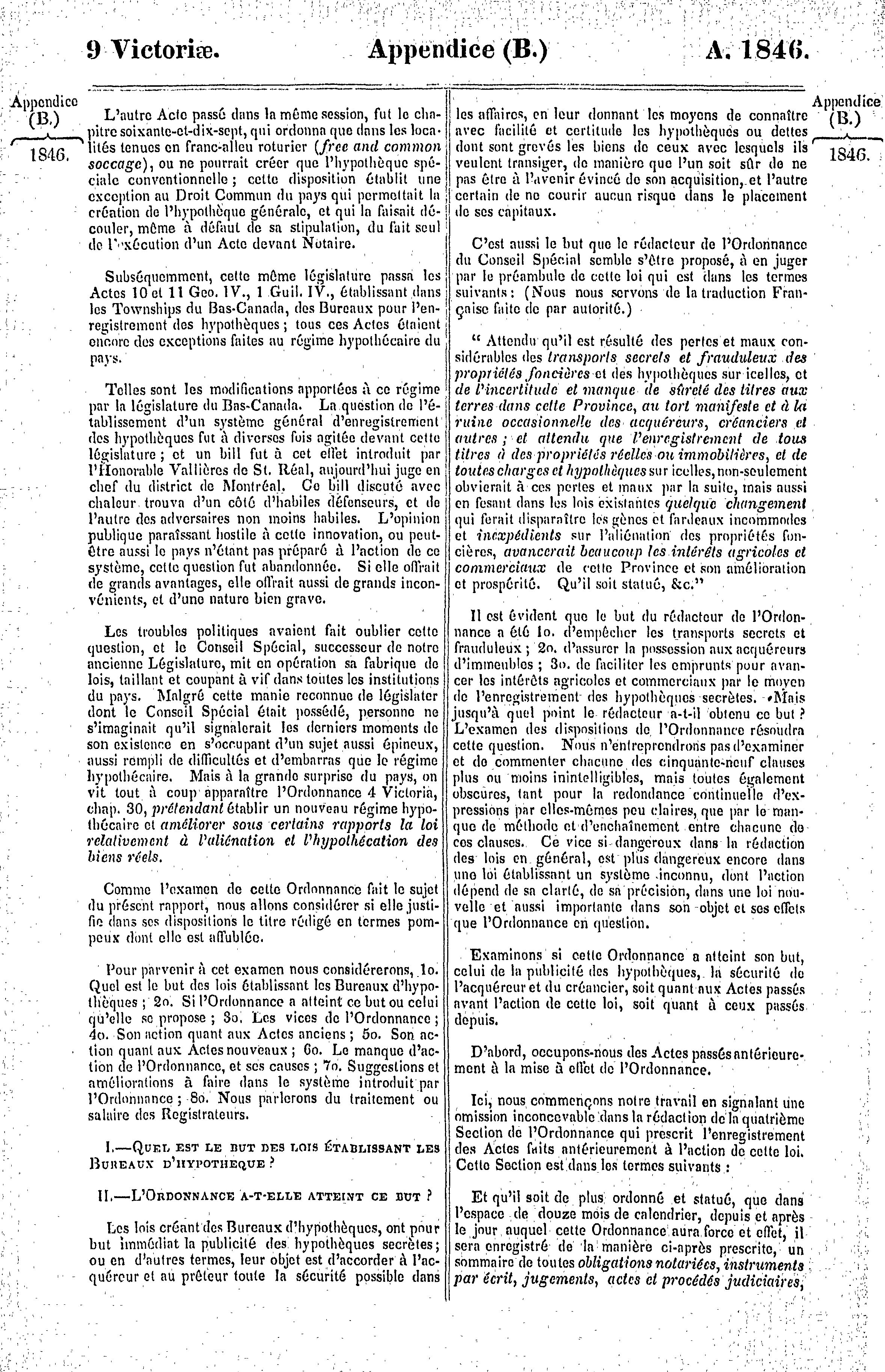 Appendice du cinquième volume des journaux de l'Assemblée législative de la Province du Canada, depuis le 20me jour de mars, jusqu'au 9me jour de juin, 1846 ces deux jours inclus, et dans la neuvième année du règne de notre souveraine dame da Reine Victoria, étant la deuxième session du second Parlement provincial du Canada : 1846 (pt. 1)