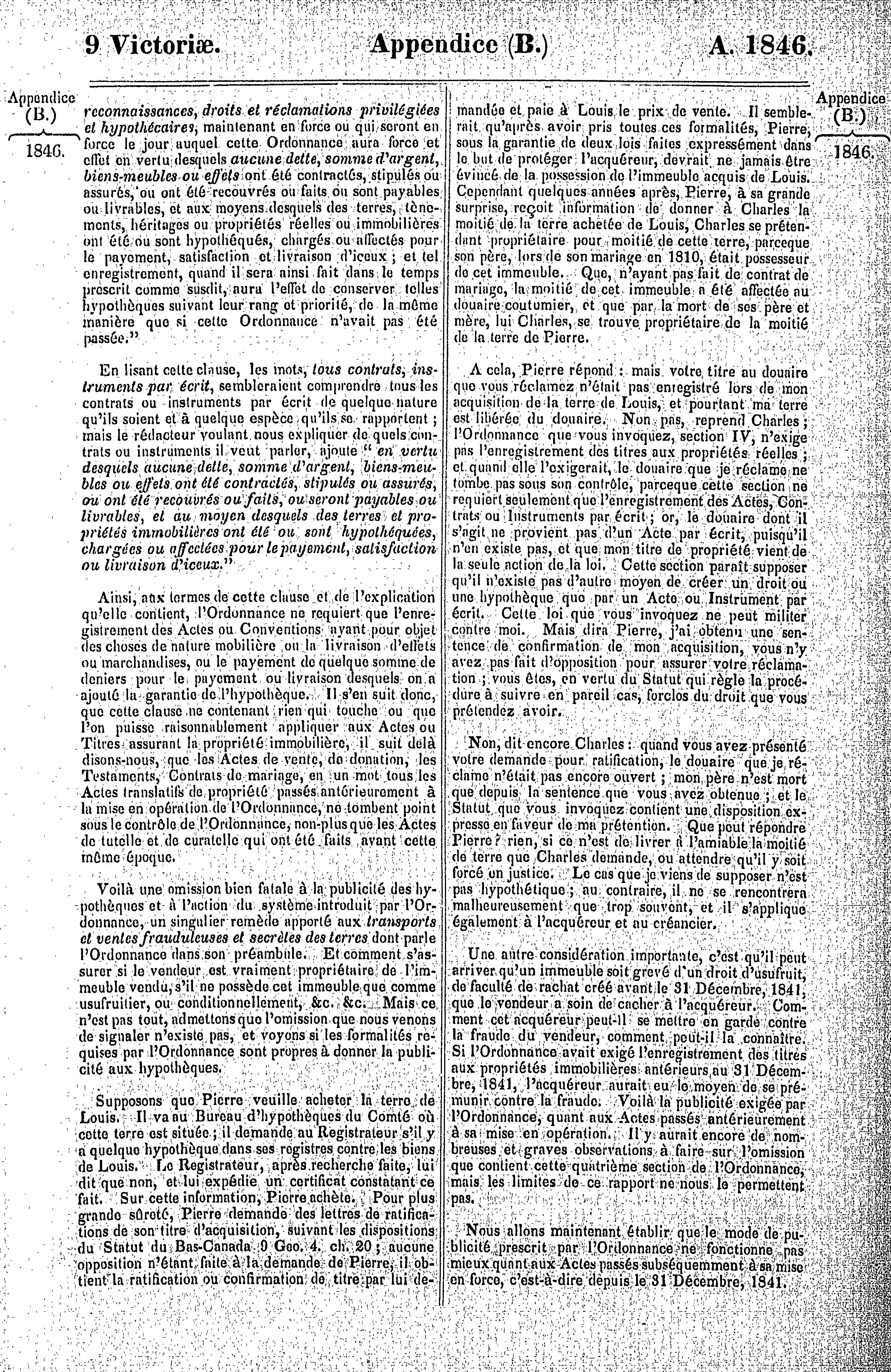 Appendice du cinquième volume des journaux de l'Assemblée législative de la Province du Canada, depuis le 20me jour de mars, jusqu'au 9me jour de juin, 1846 ces deux jours inclus, et dans la neuvième année du règne de notre souveraine dame da Reine Victoria, étant la deuxième session du second Parlement provincial du Canada : 1846 (pt. 1)