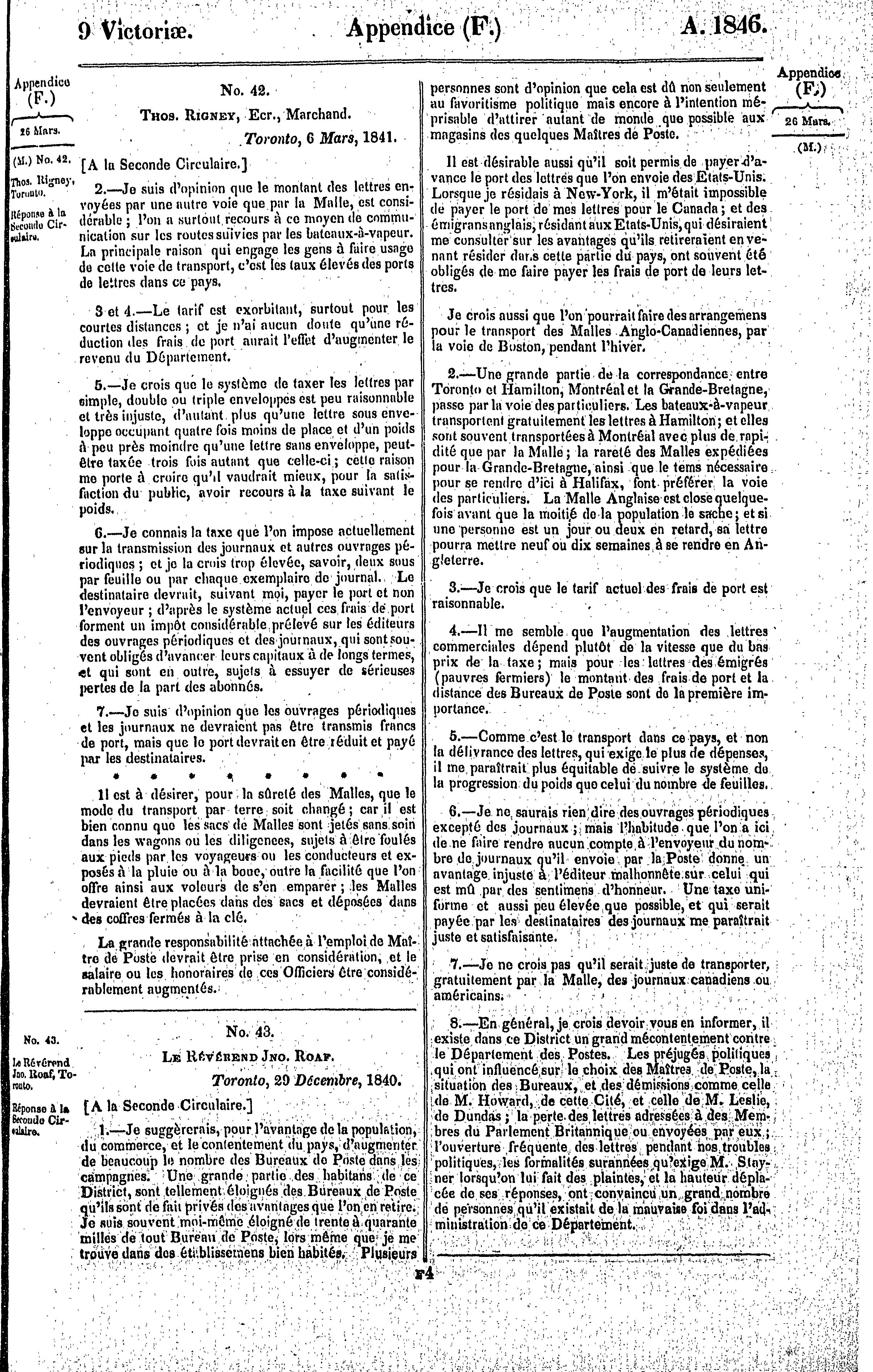 Appendice du cinquième volume des journaux de l'Assemblée législative de la Province du Canada, depuis le 20me jour de mars, jusqu'au 9me jour de juin, 1846 ces deux jours inclus, et dans la neuvième année du règne de notre souveraine dame da Reine Victoria, étant la deuxième session du second Parlement provincial du Canada : 1846 (pt. 1)