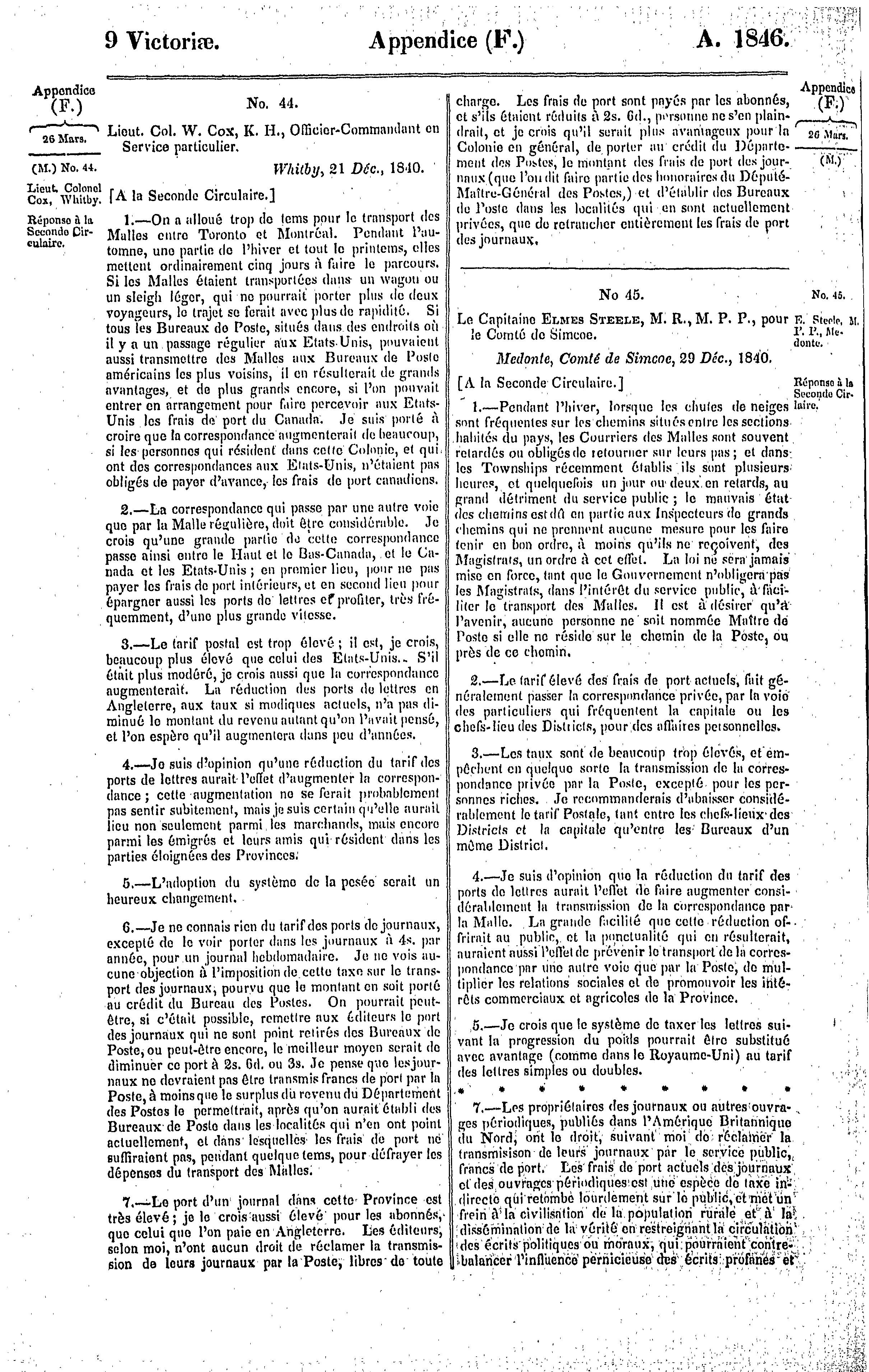 Appendice du cinquième volume des journaux de l'Assemblée législative de la Province du Canada, depuis le 20me jour de mars, jusqu'au 9me jour de juin, 1846 ces deux jours inclus, et dans la neuvième année du règne de notre souveraine dame da Reine Victoria, étant la deuxième session du second Parlement provincial du Canada : 1846 (pt. 1)