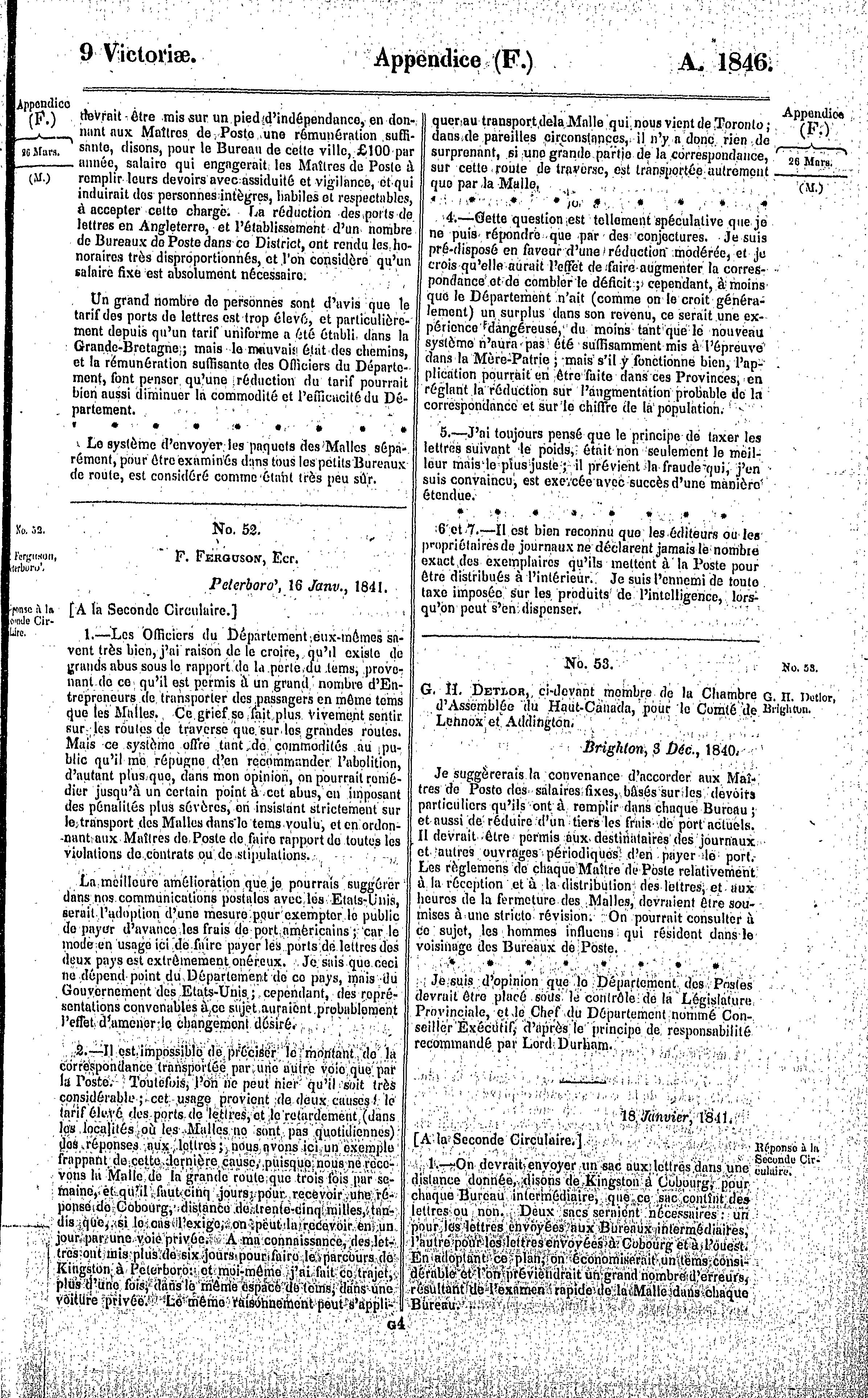 Appendice du cinquième volume des journaux de l'Assemblée législative de la Province du Canada, depuis le 20me jour de mars, jusqu'au 9me jour de juin, 1846 ces deux jours inclus, et dans la neuvième année du règne de notre souveraine dame da Reine Victoria, étant la deuxième session du second Parlement provincial du Canada : 1846 (pt. 1)