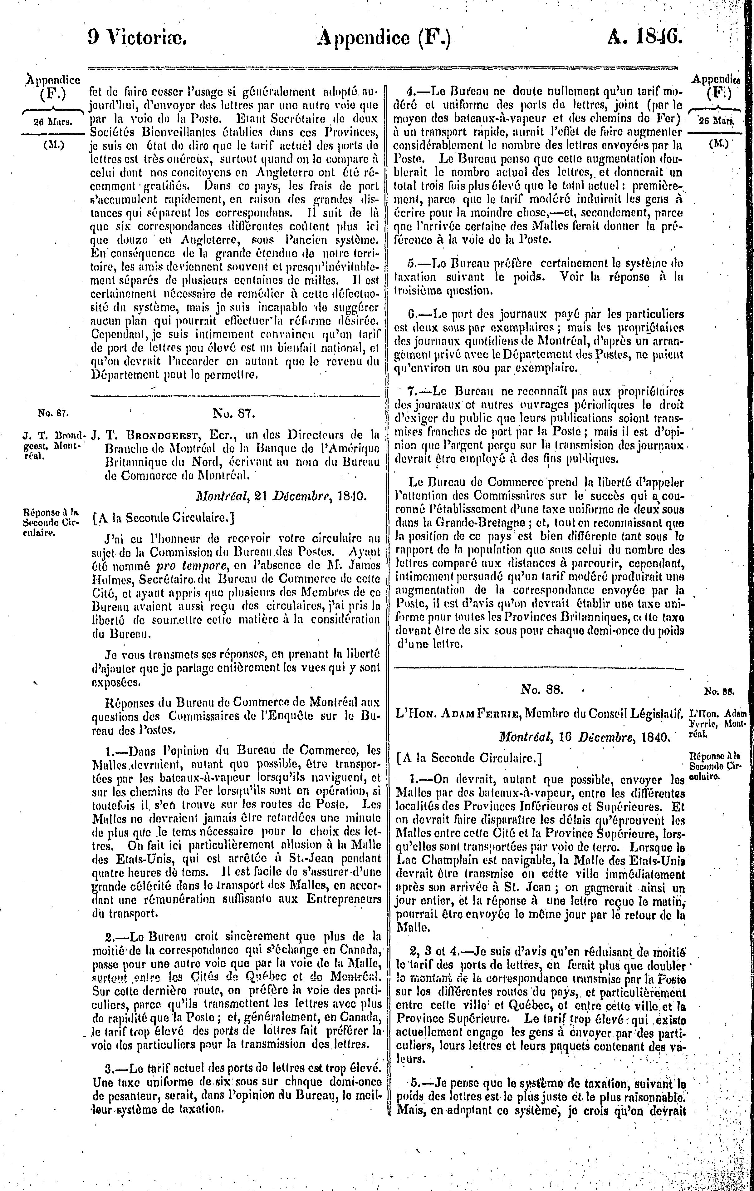 Appendice du cinquième volume des journaux de l'Assemblée législative de la Province du Canada, depuis le 20me jour de mars, jusqu'au 9me jour de juin, 1846 ces deux jours inclus, et dans la neuvième année du règne de notre souveraine dame da Reine Victoria, étant la deuxième session du second Parlement provincial du Canada : 1846 (pt. 1)