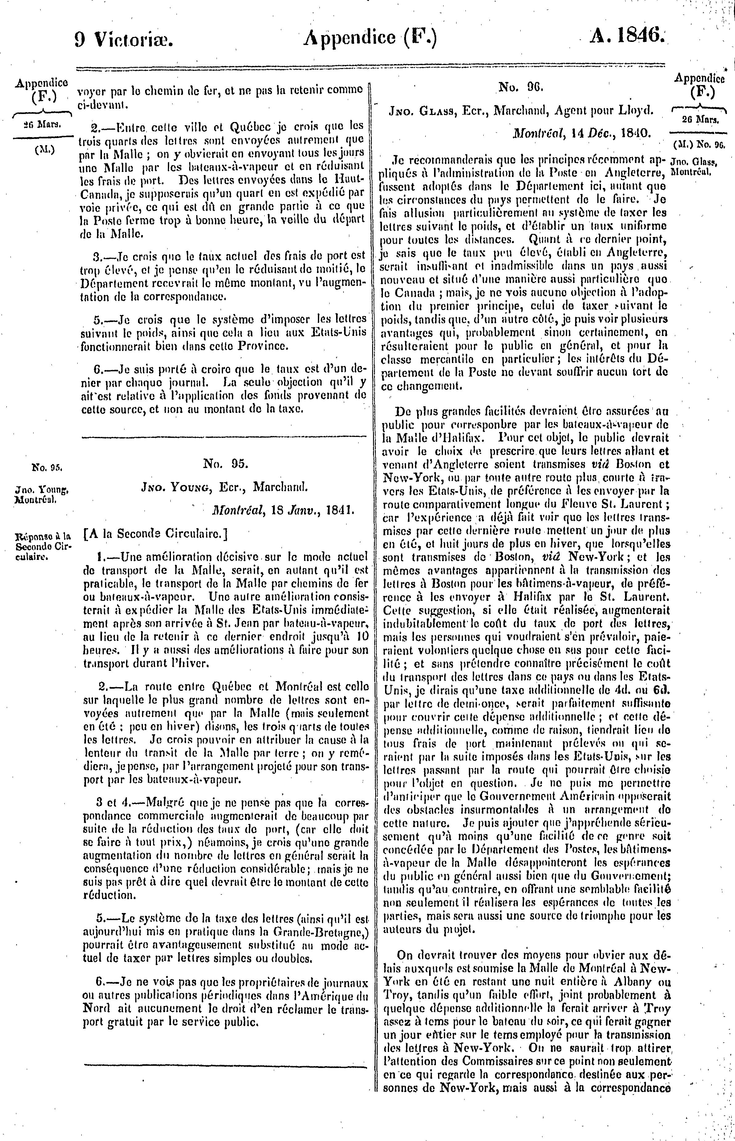 Appendice du cinquième volume des journaux de l'Assemblée législative de la Province du Canada, depuis le 20me jour de mars, jusqu'au 9me jour de juin, 1846 ces deux jours inclus, et dans la neuvième année du règne de notre souveraine dame da Reine Victoria, étant la deuxième session du second Parlement provincial du Canada : 1846 (pt. 1)
