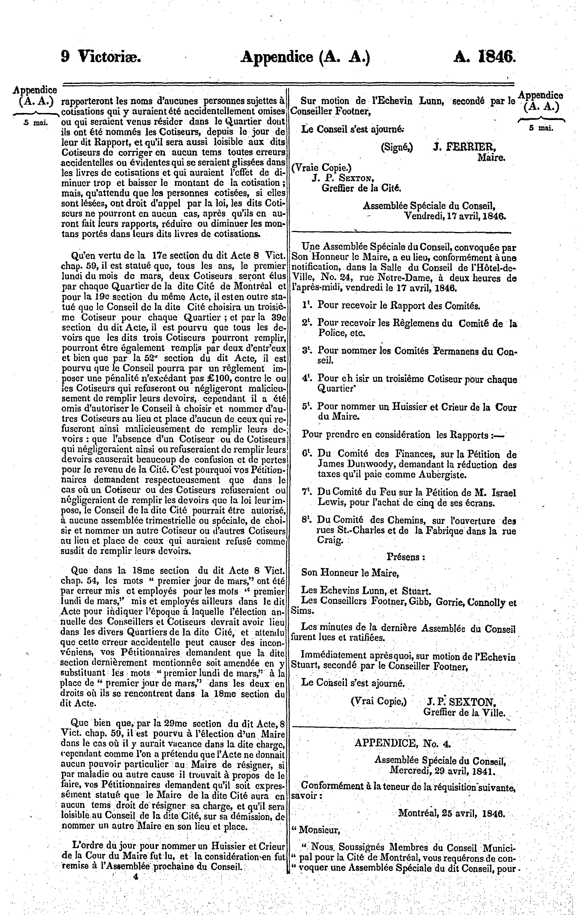 Appendice du cinquième volume des journaux de l'Assemblée législative de la Province du Canada, depuis le 20 mars, jusqu'au 9 juin, 1846, ces deux jours compris, et dans la neuvième année du règne de notre souveraine dame da Reine Victoria, seconde session du deuxième Parlement provincial du Canada : 1846 (pt. 3)