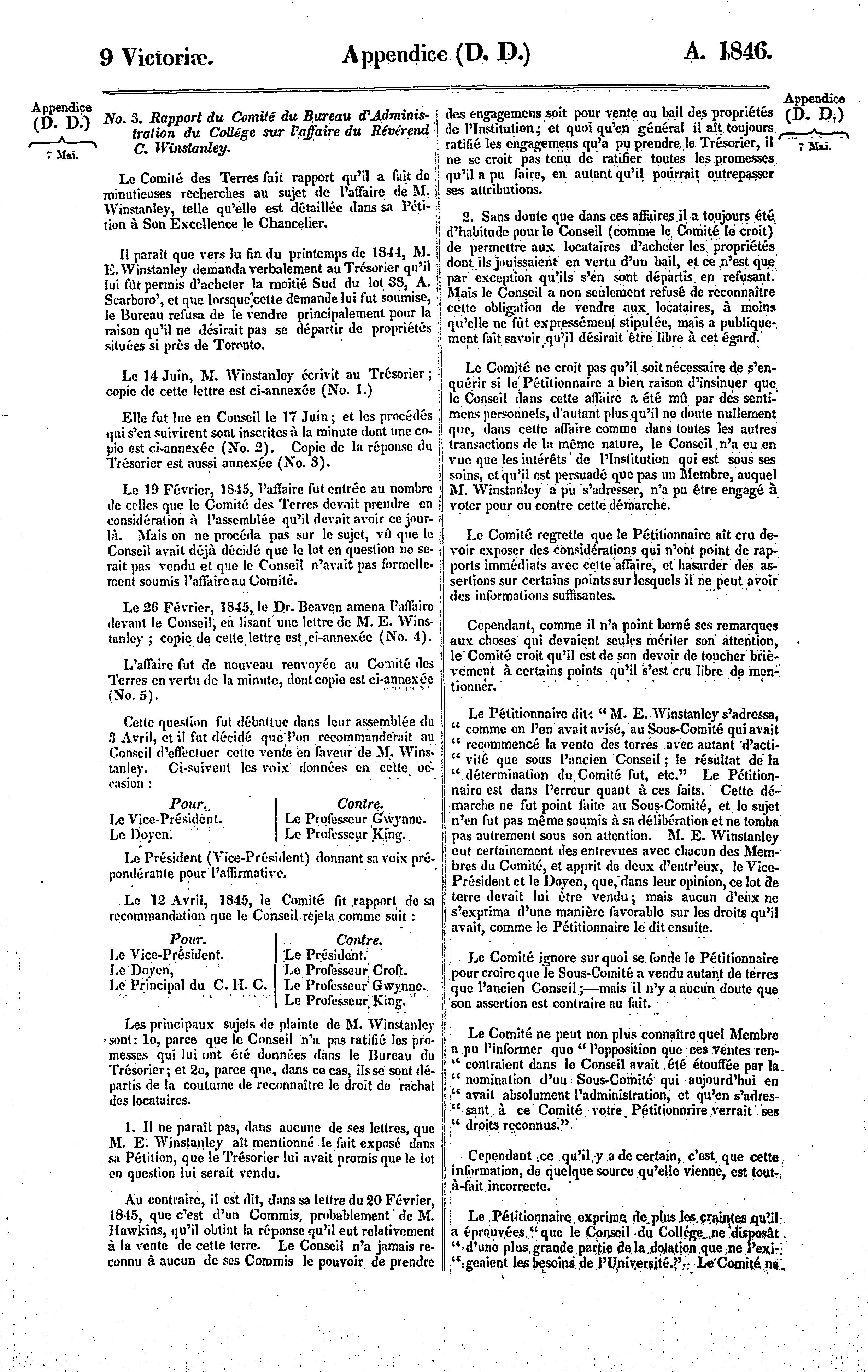 Appendice du cinquième volume des journaux de l'Assemblée législative de la Province du Canada, depuis le 20 mars, jusqu'au 9 juin, 1846, ces deux jours compris, et dans la neuvième année du règne de notre souveraine dame da Reine Victoria, seconde session du deuxième Parlement provincial du Canada : 1846 (pt. 3)