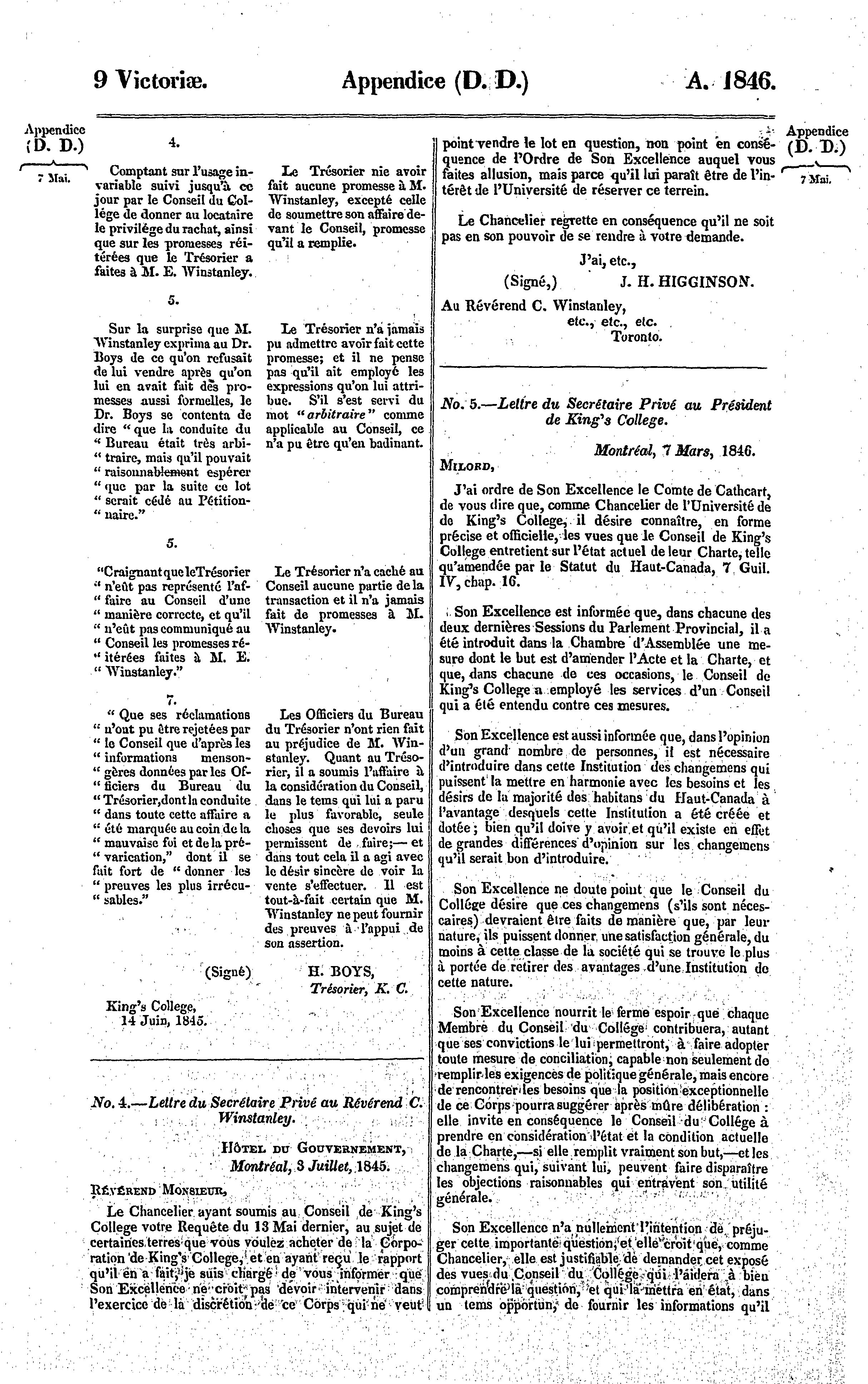 Appendice du cinquième volume des journaux de l'Assemblée législative de la Province du Canada, depuis le 20 mars, jusqu'au 9 juin, 1846, ces deux jours compris, et dans la neuvième année du règne de notre souveraine dame da Reine Victoria, seconde session du deuxième Parlement provincial du Canada : 1846 (pt. 3)