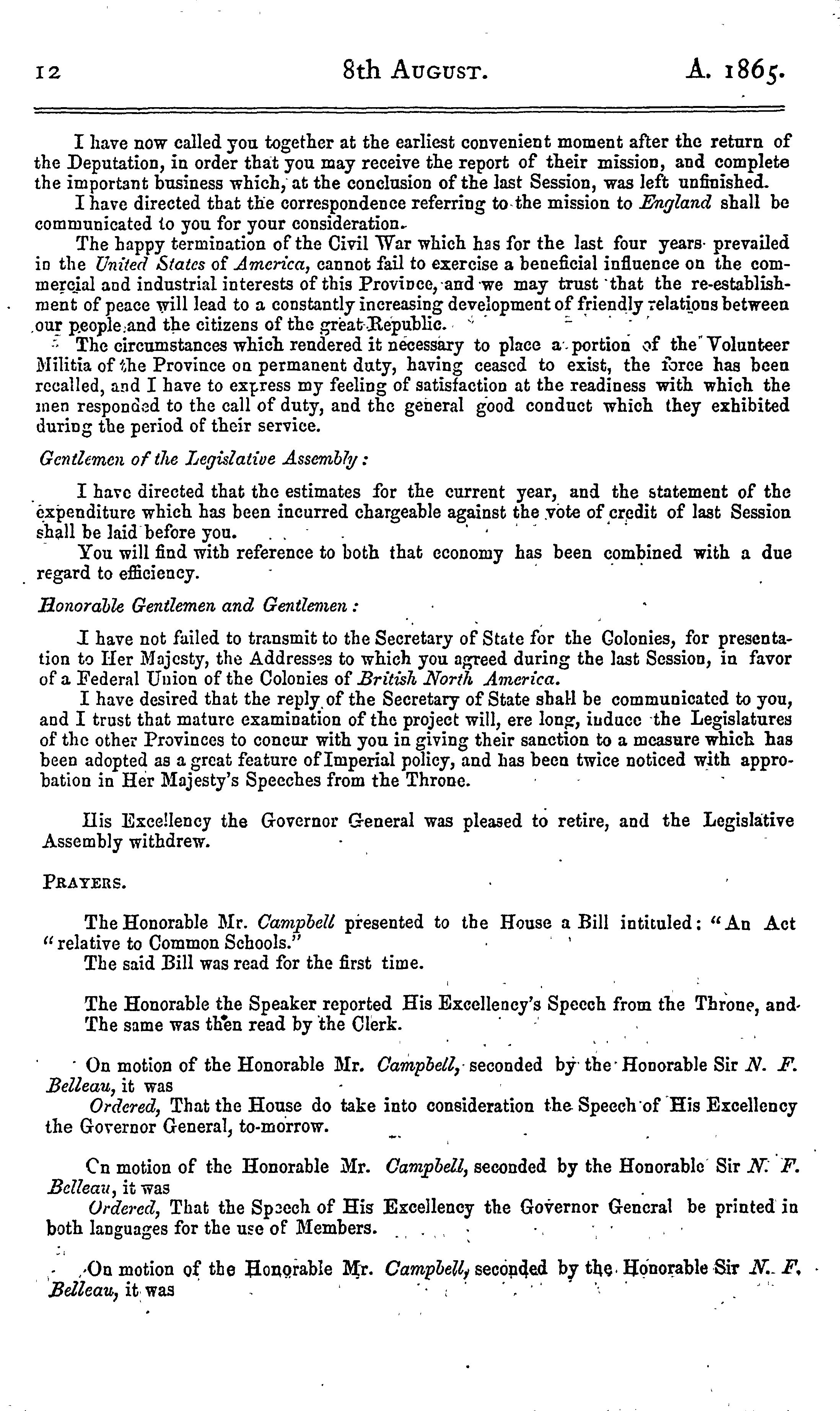 [Québec : Queen's Printer, 1865]