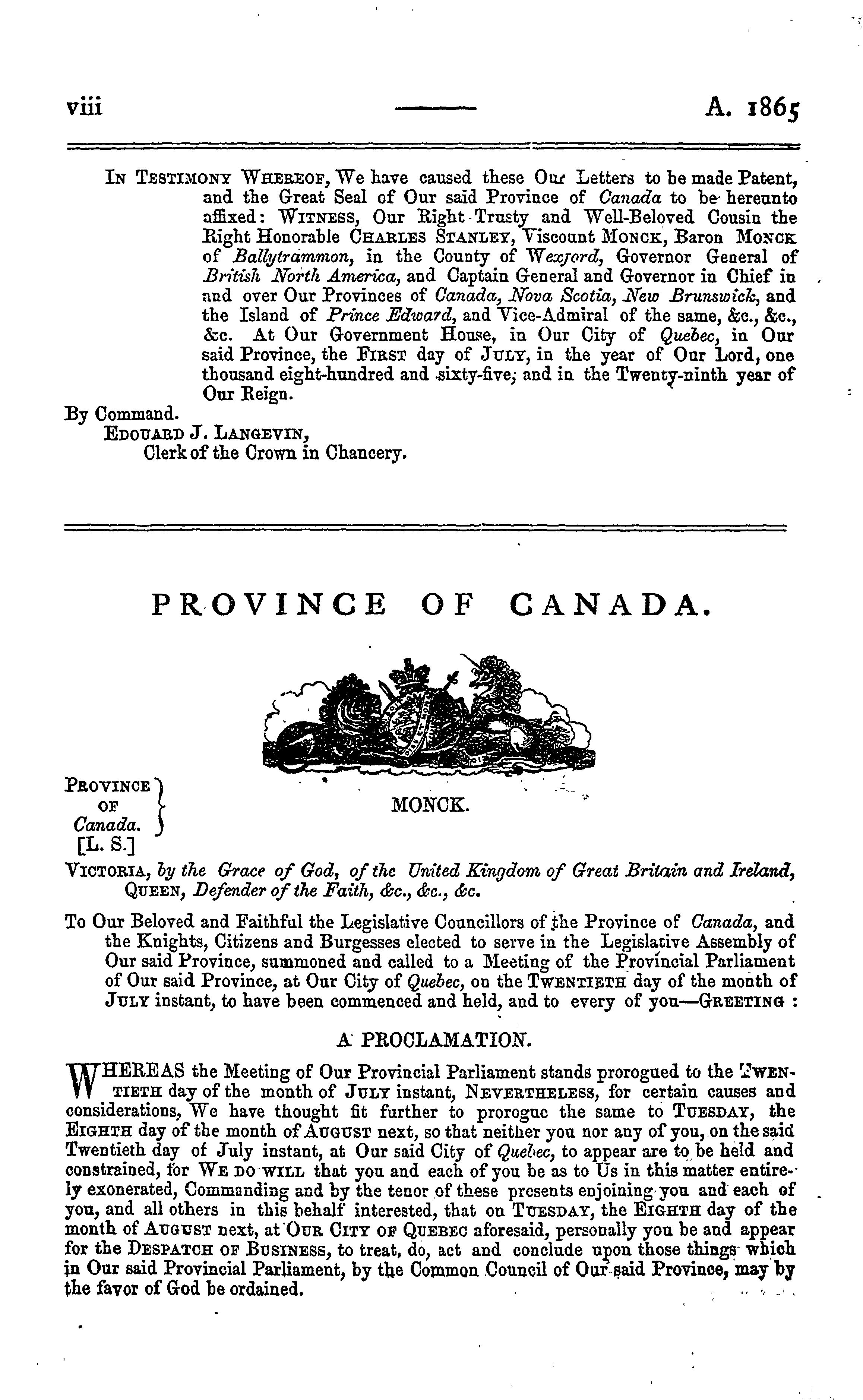 Journals of the Legislative Council of the Province of Canada ... being the fourth session of the eighth provincial Parliament, 1865 : 1865