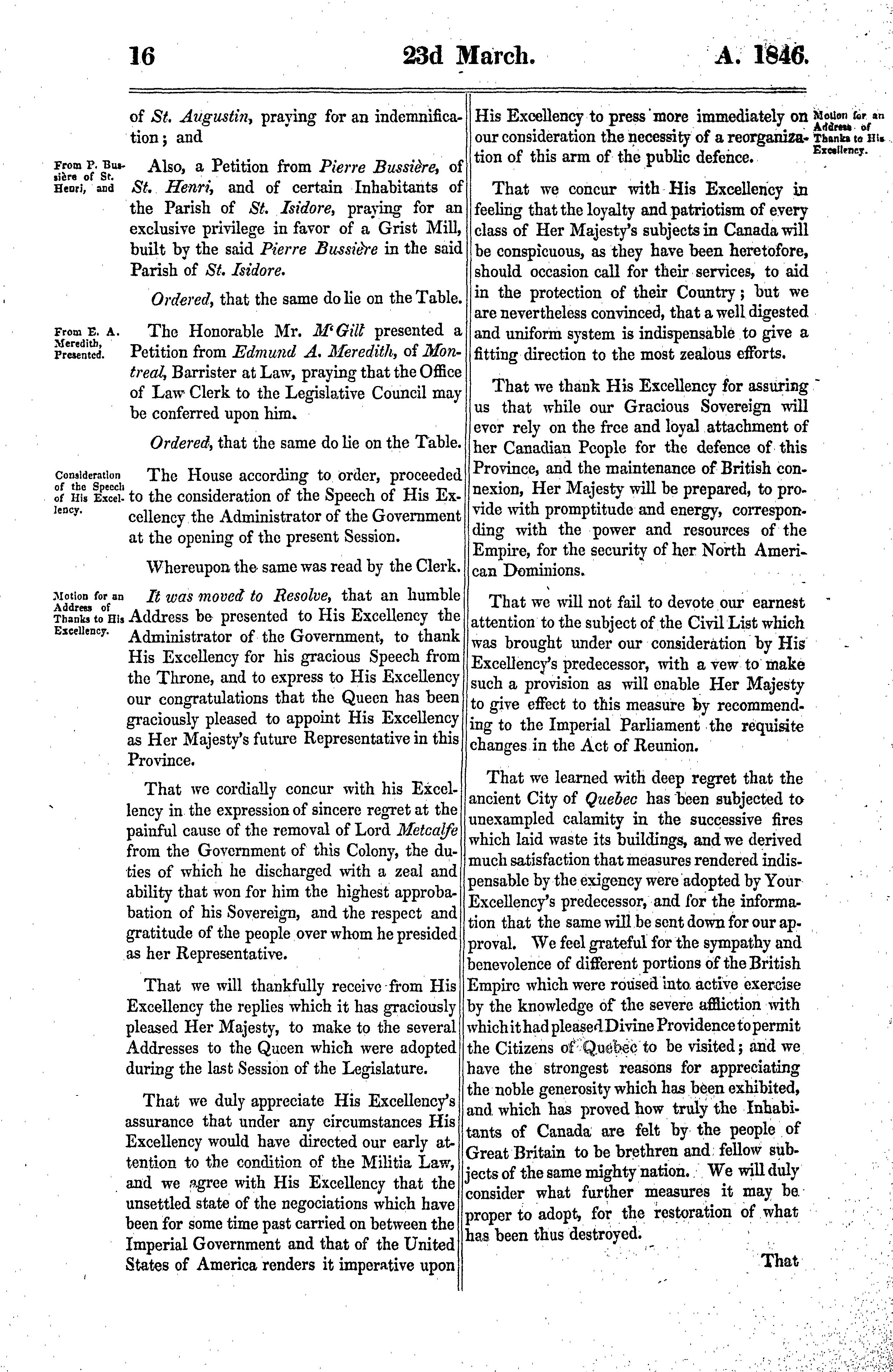 Journals of the Legislative Council of the Province of Canada ... being the second session of the second provincial Parliament, 1846 : 1846