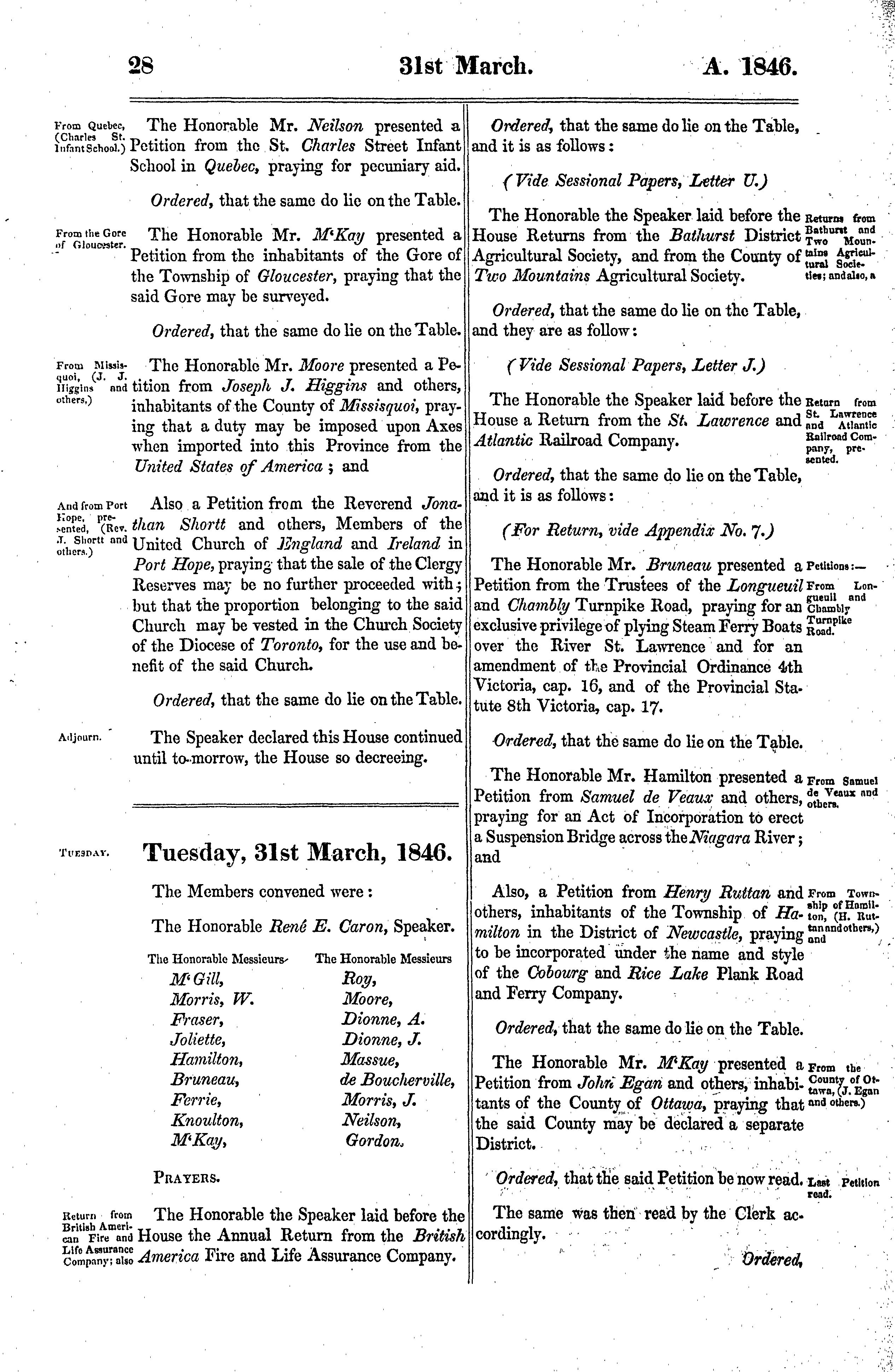 Journals of the Legislative Council of the Province of Canada ... being the second session of the second provincial Parliament, 1846 : 1846