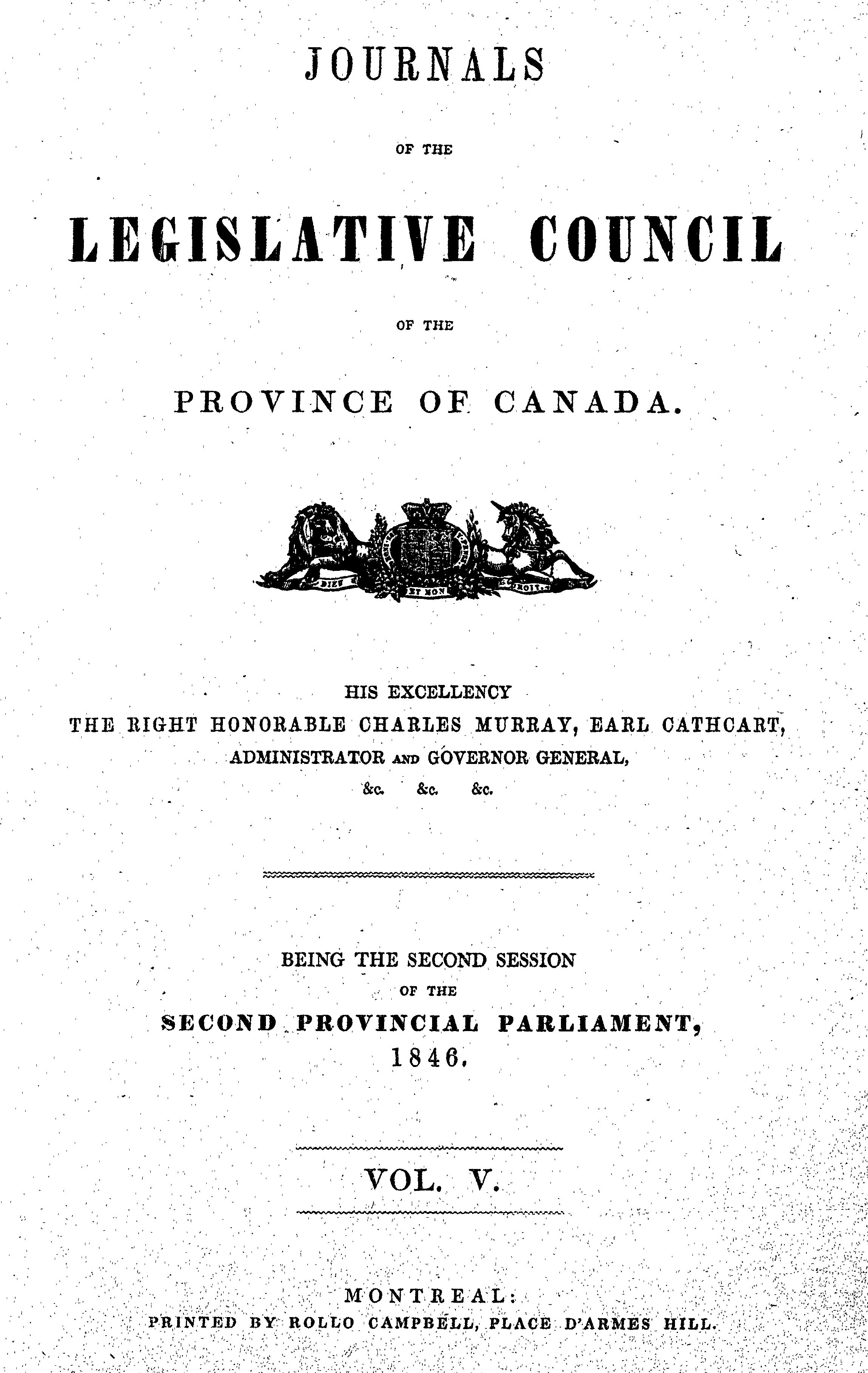 Journals of the Legislative Council of the Province of Canada ... being the second session of the second provincial Parliament, 1846 : 1846