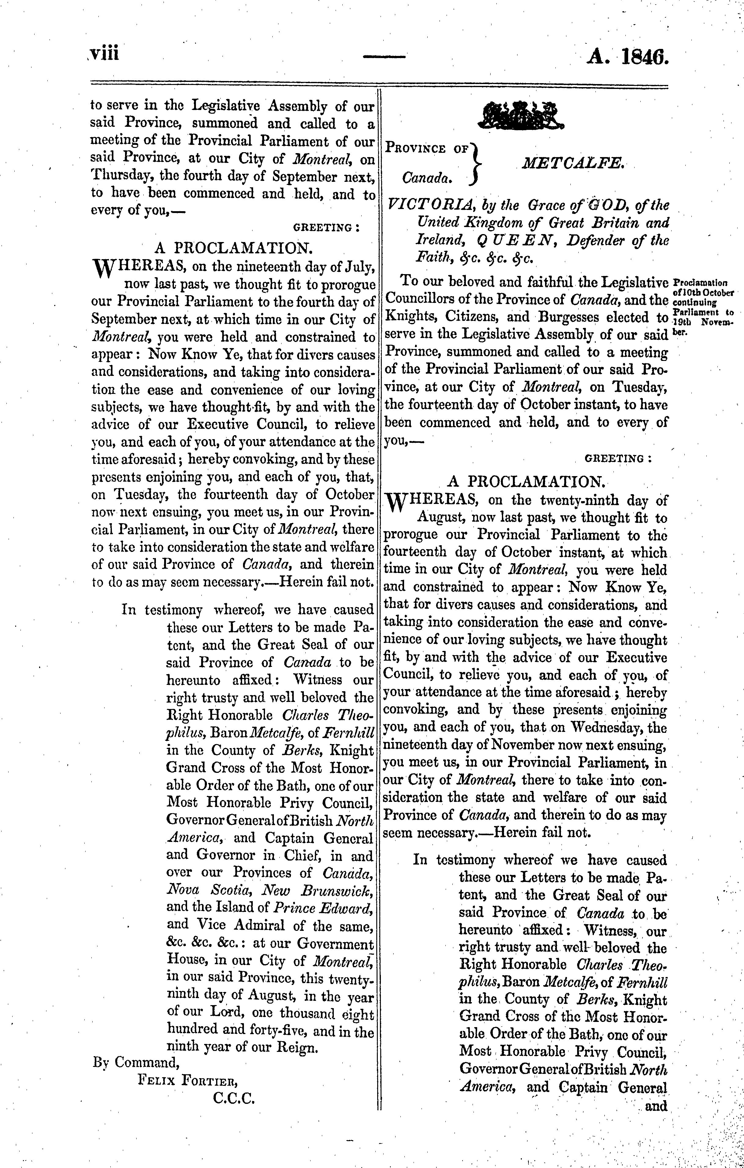 Journals of the Legislative Council of the Province of Canada ... being the second session of the second provincial Parliament, 1846 : 1846