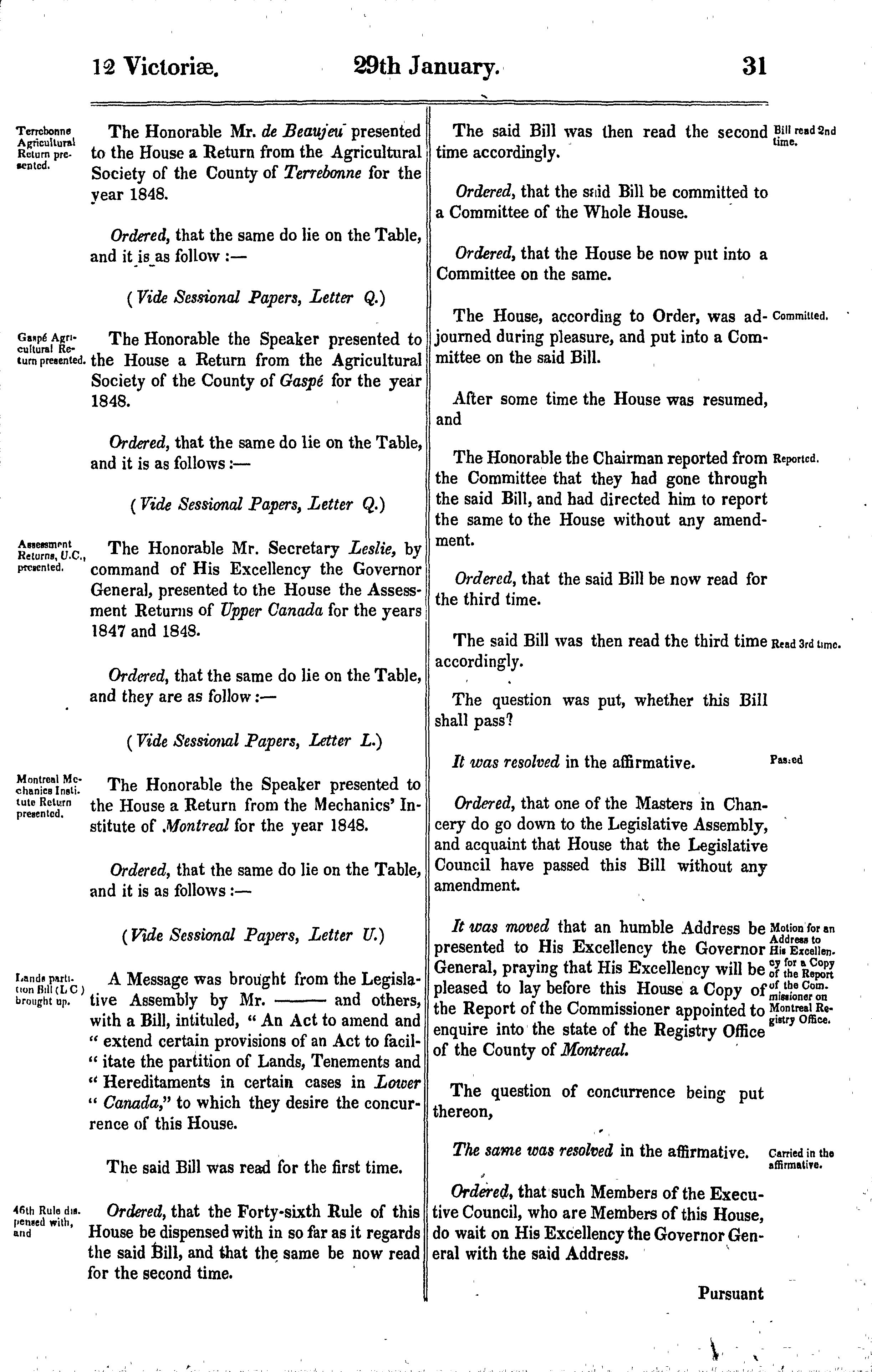 Journals of the Legislative Council of the Province of Canada ... being the second session of the third provincial Parliament, 1849 : 1849 (pt. 1)