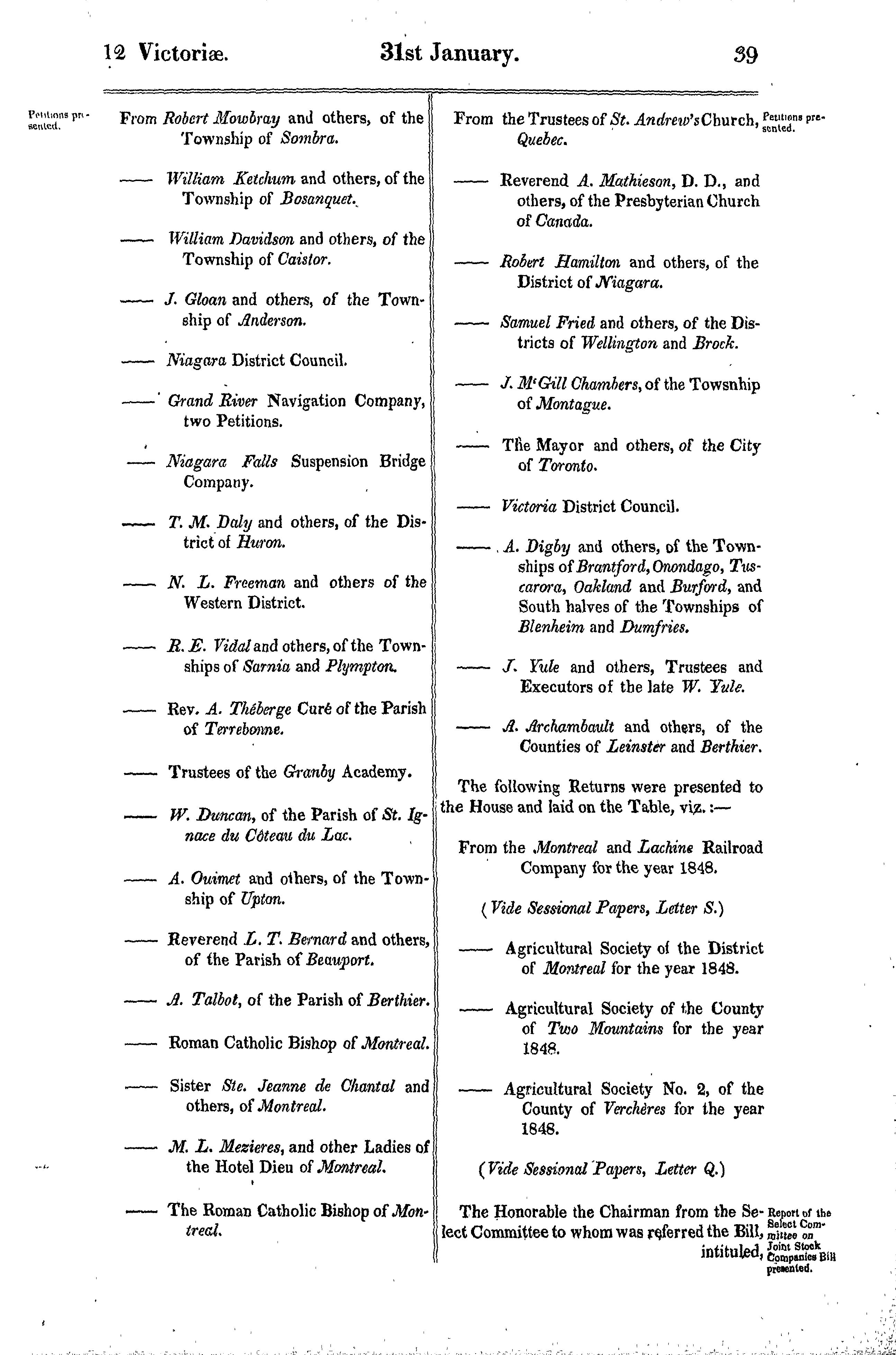 Journals of the Legislative Council of the Province of Canada ... being the second session of the third provincial Parliament, 1849 : 1849 (pt. 1)