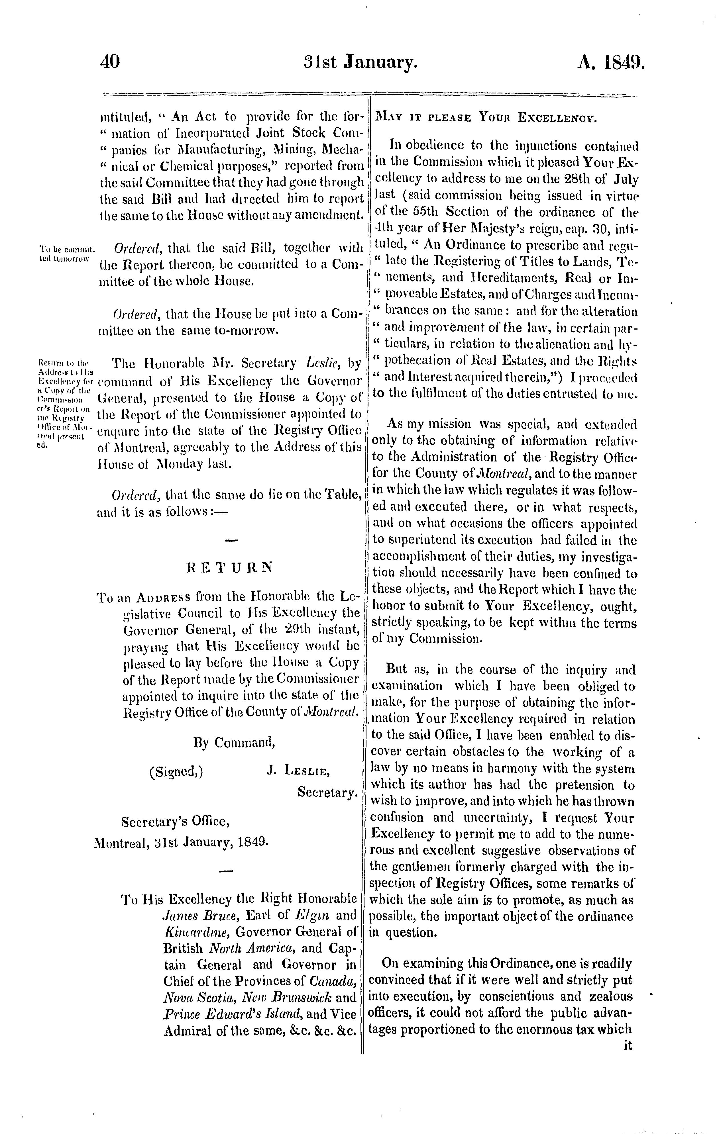 Journals of the Legislative Council of the Province of Canada ... being the second session of the third provincial Parliament, 1849 : 1849 (pt. 1)
