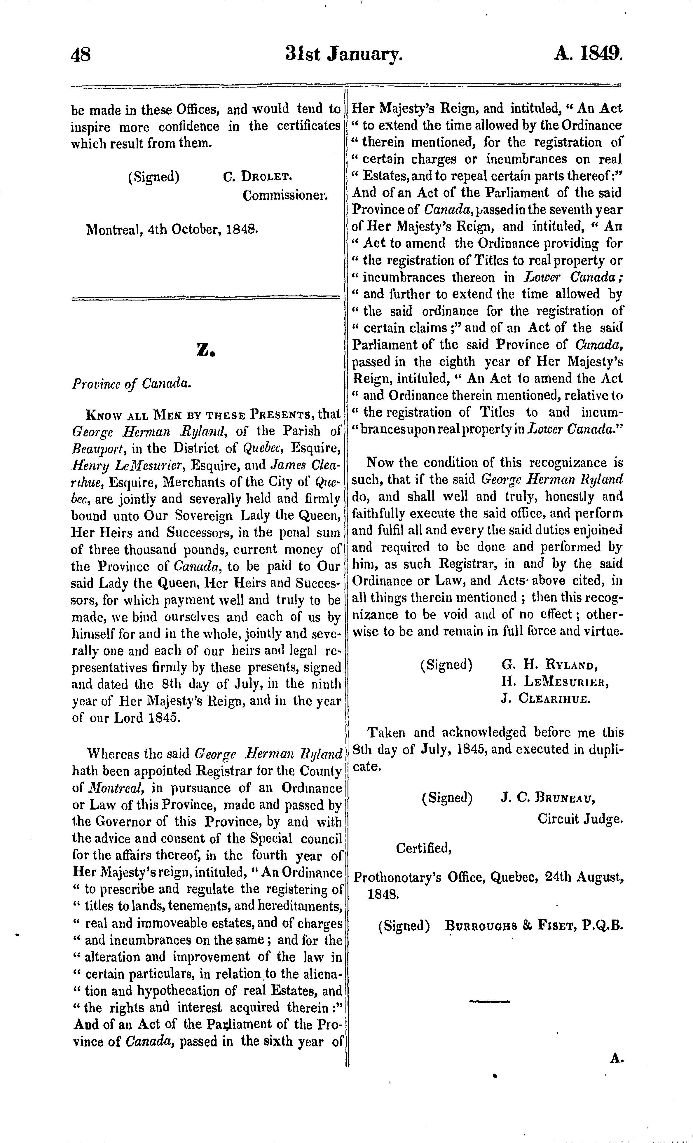 Journals of the Legislative Council of the Province of Canada ... being the second session of the third provincial Parliament, 1849 : 1849 (pt. 1)